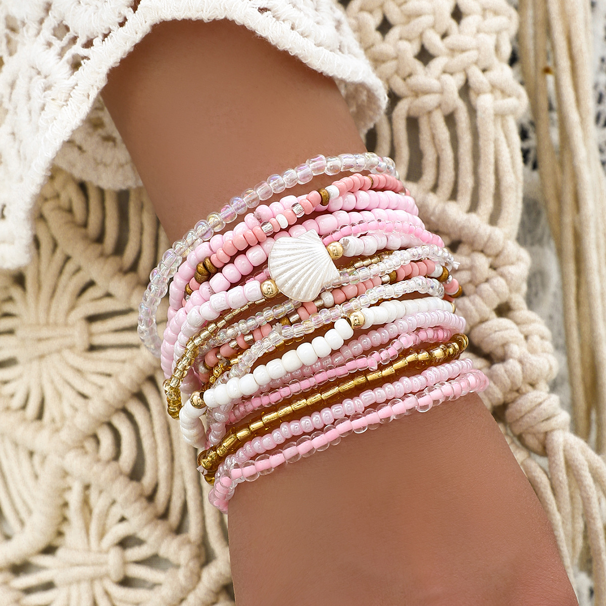 Boho Colorful Beaded Multi-layer Rice Bead Shell 17-piece Bracelet Set