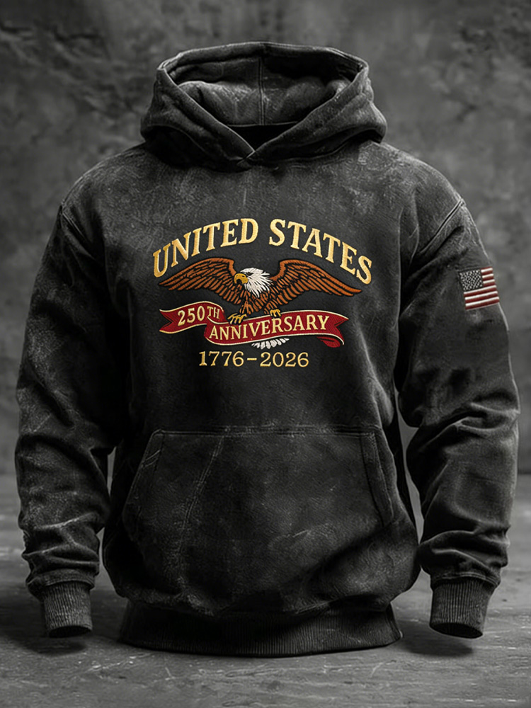 Men's Retro 250th Anniversary Printed Hooded Sweatshirt