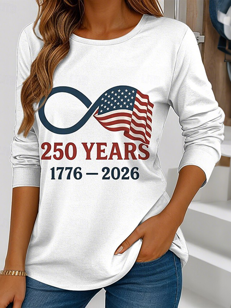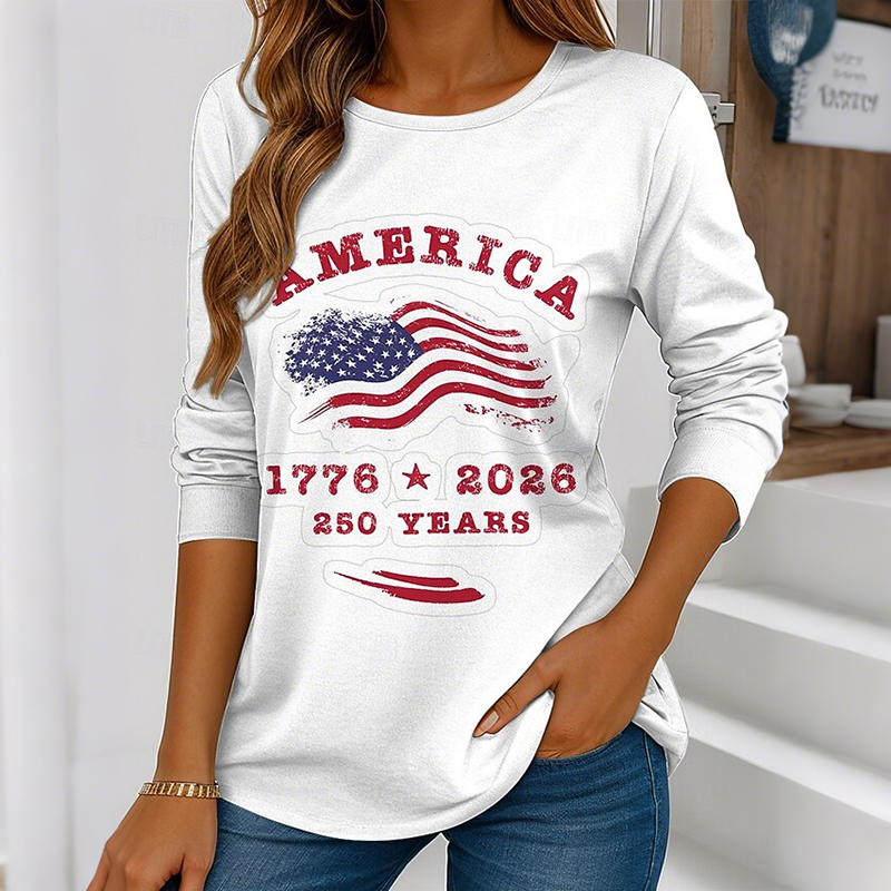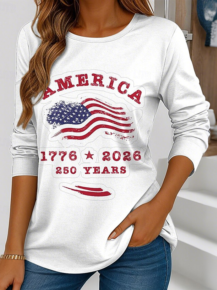 Women's Casual American 250th Anniversary Patriotic Long Sleeve T-shirt