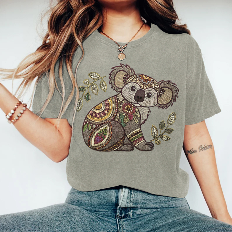 Women's Australian Koala Floral Art Print Short Sleeve Casual T-shirt