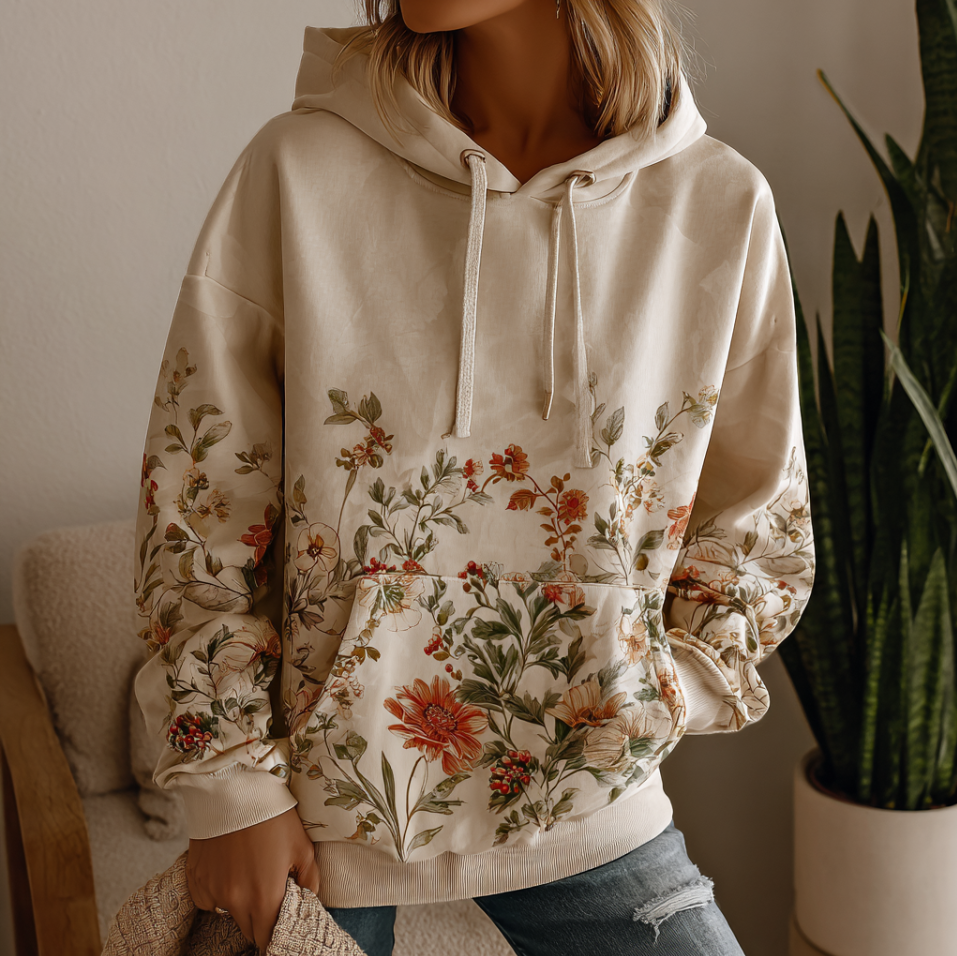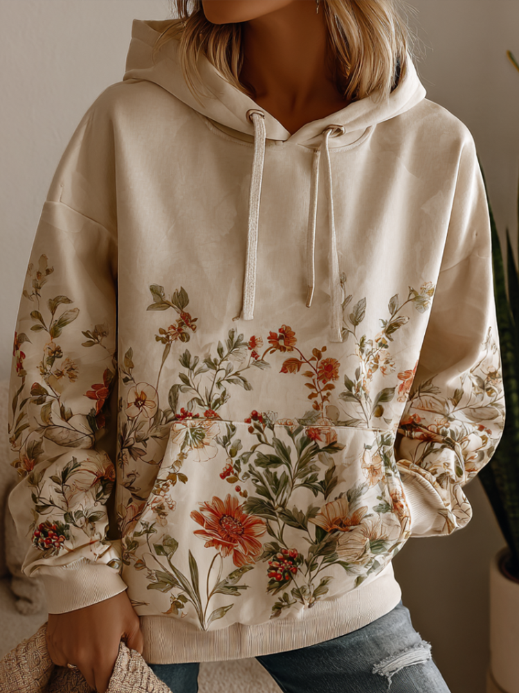 Women's Floral Embroidery Art Cozy Hooded Sweatshirt