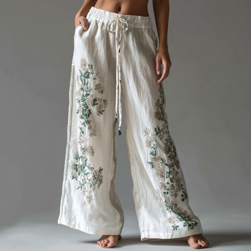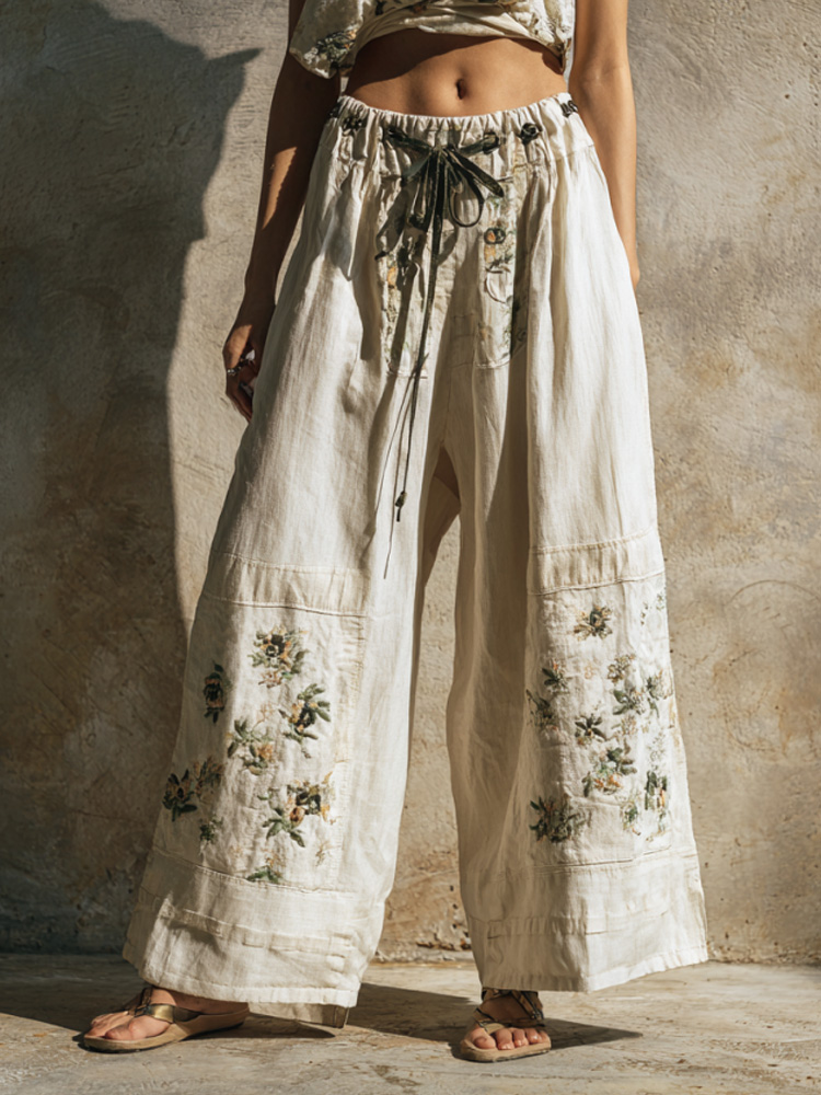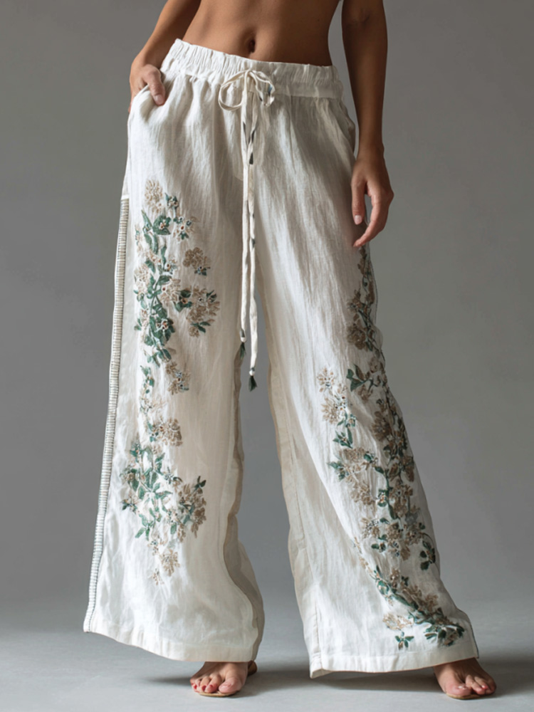 Women's Vintage Embroidery Art Comfy Linen Pants