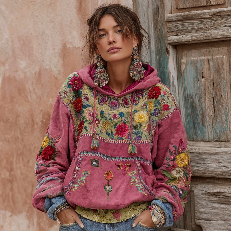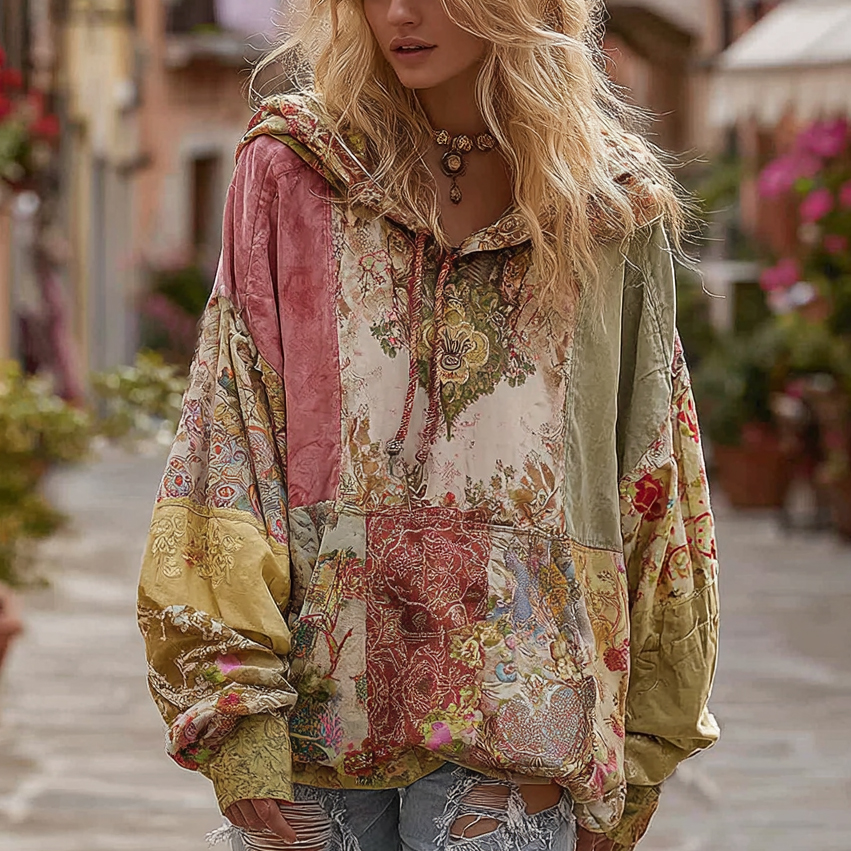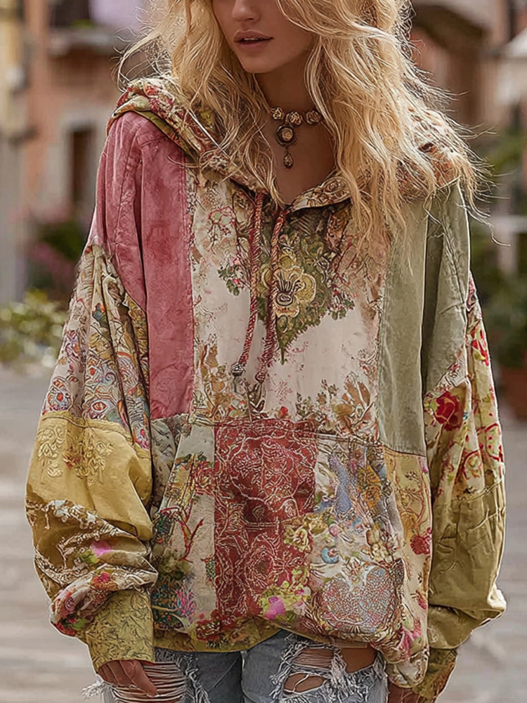 Women's Bohemian Floral Patchwork Cozy Warm Hoodie
