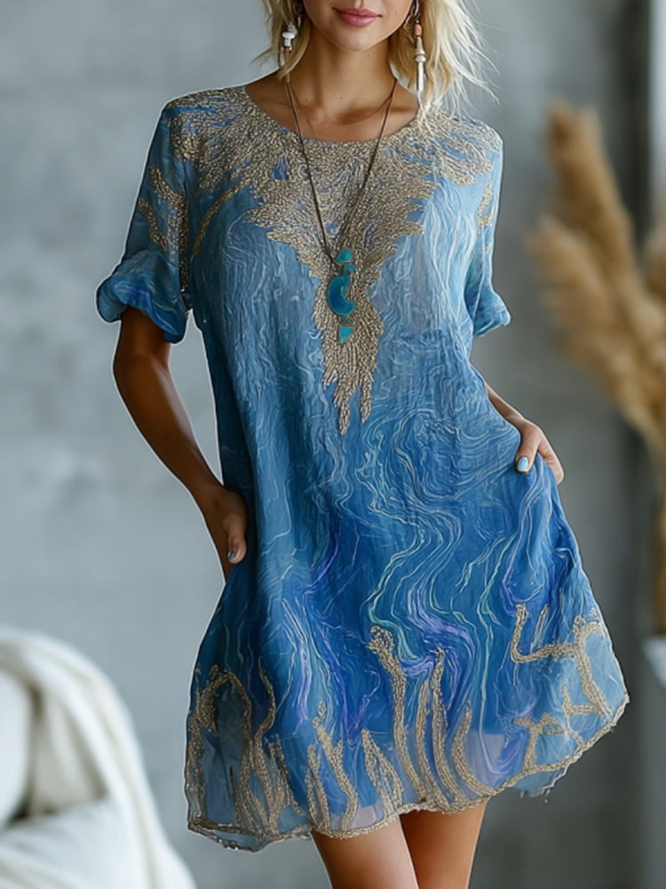 Vintage Marble Texture Collection Retro Bohemia Gradient Gilded Pattern Linen Dress