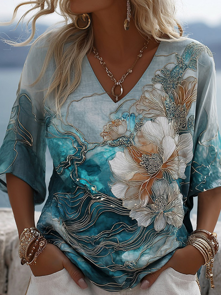 Bohemian Style Women's V-neck Long-sleeve T-shirt