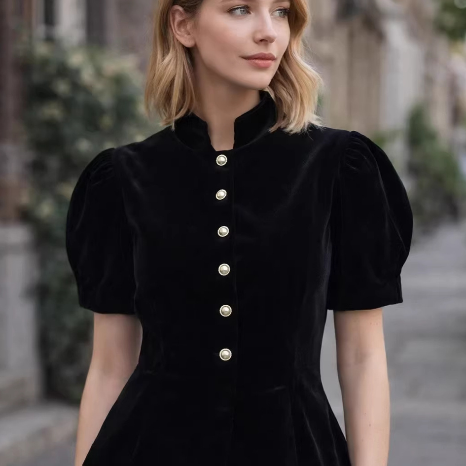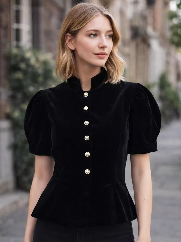Elegant Temperament French Retro Velvet Round Neck Short Sleeve Coat