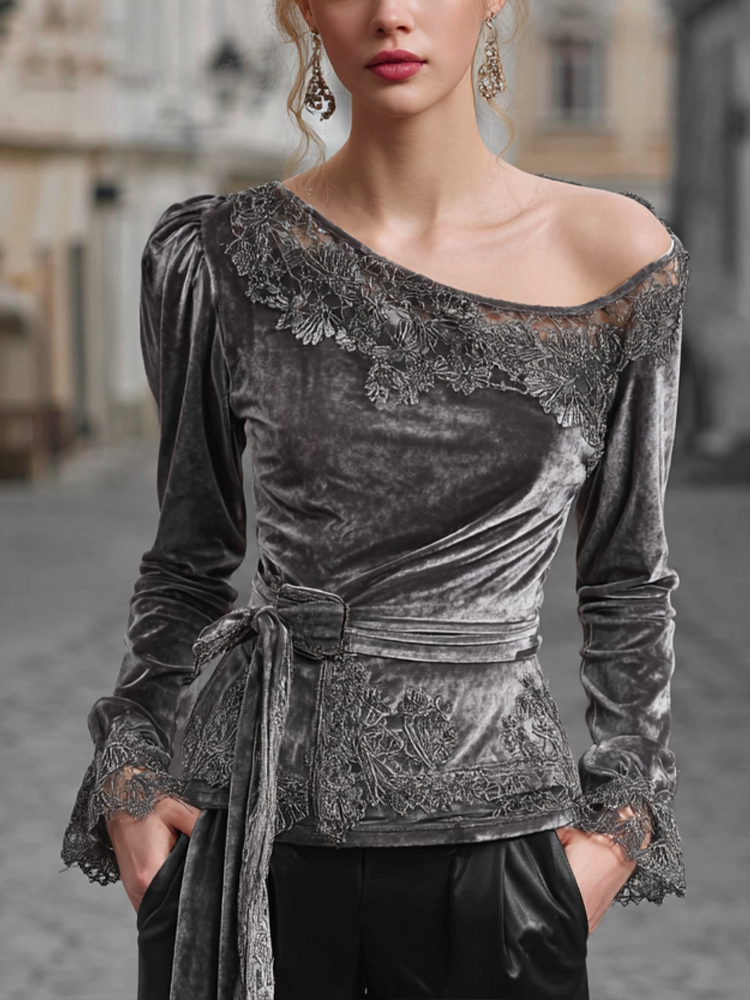 Women's Elegant French Lace-patched Waist-defining Blazer