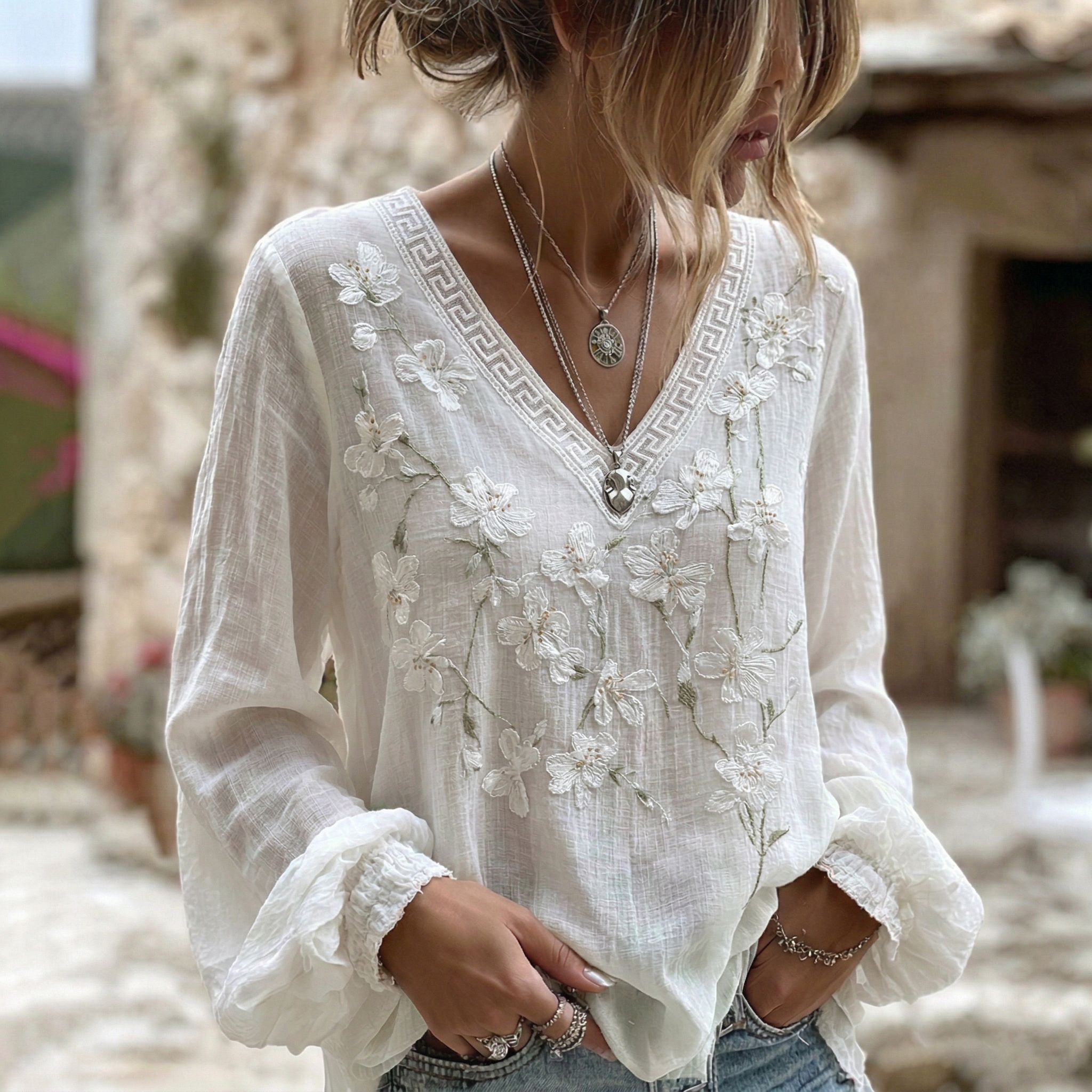 Women's Women's Casual V-neck Artistic Embroidered Top