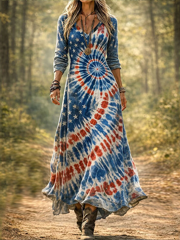 Women's Vintage Floral Independence Day Flag Art Print Dress