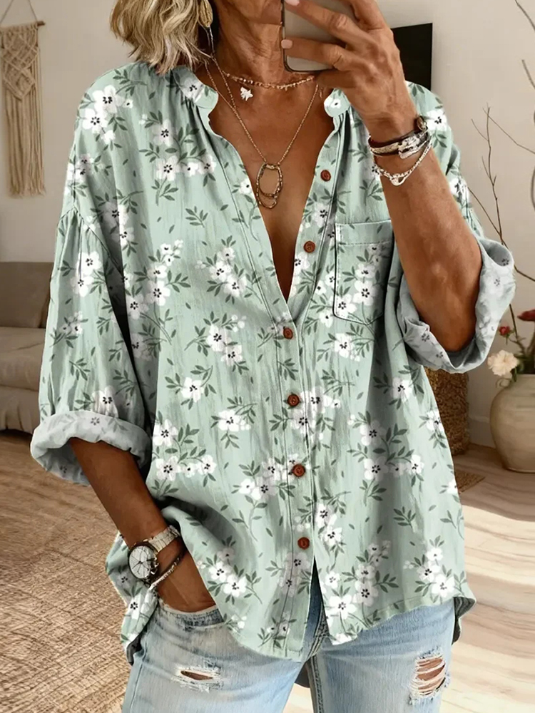 Women's Casual Retro Floral Artistic Art Print Cotton Shirts