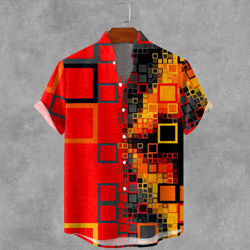 Vintage Geometric Square Design Art Print Casual Cotton Shirt