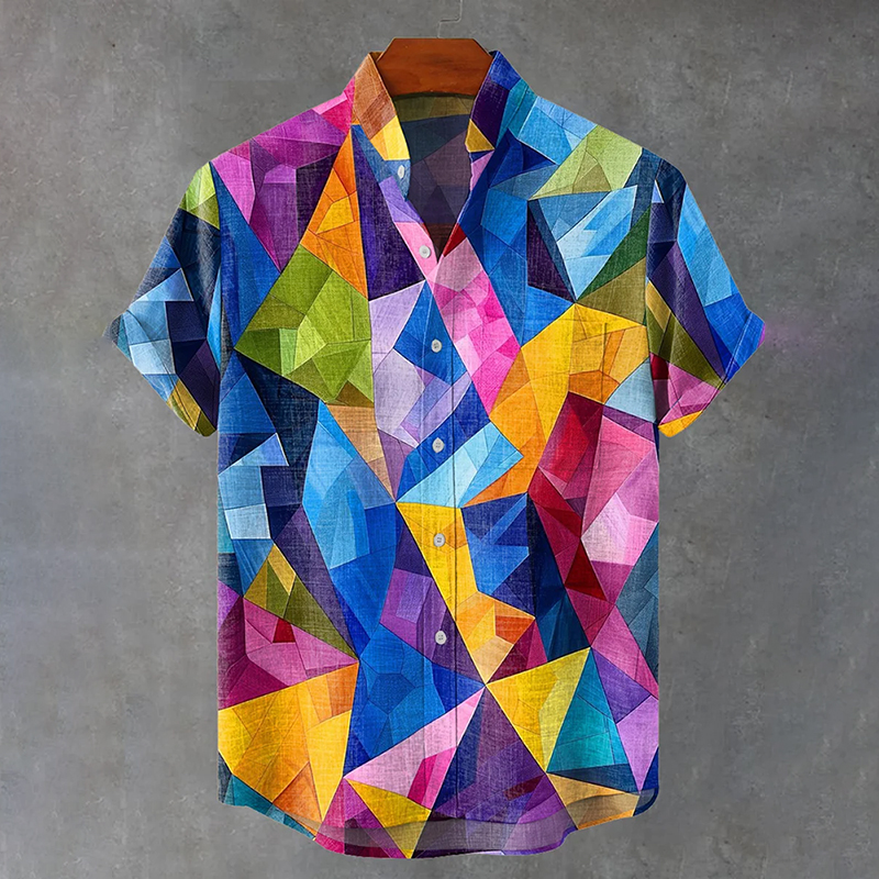 Men's Retro Irregular Colorful Geometric Art Print Cotton And Linen Shirt