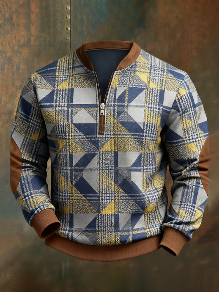 Men's Houndstooth Art Contrast Color Print Half Zip Sweatshirt