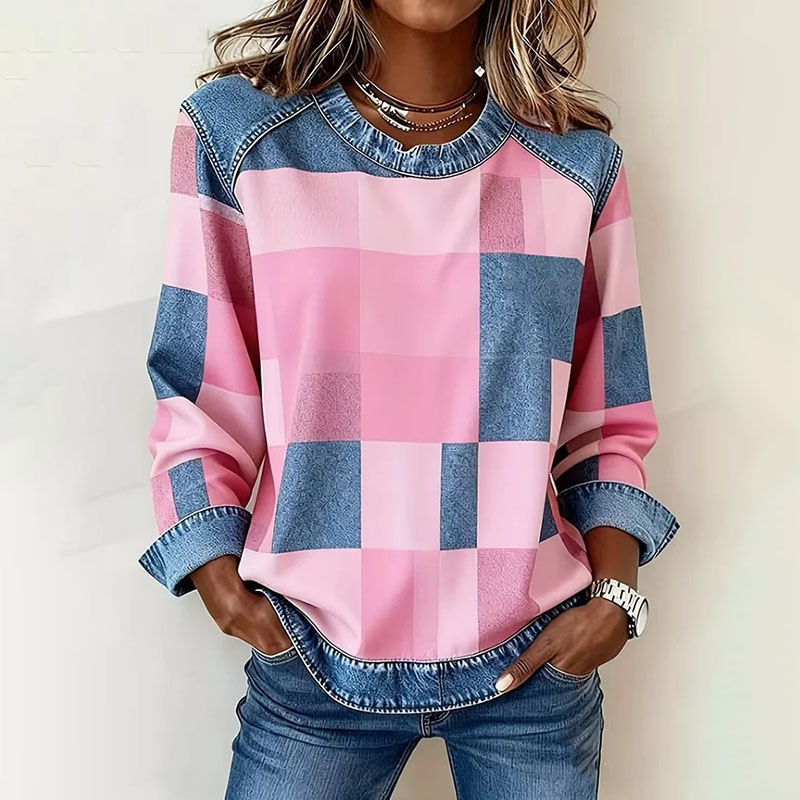 Women's Retro Abstract Geometric Print Crew Neck Sweatshirt
