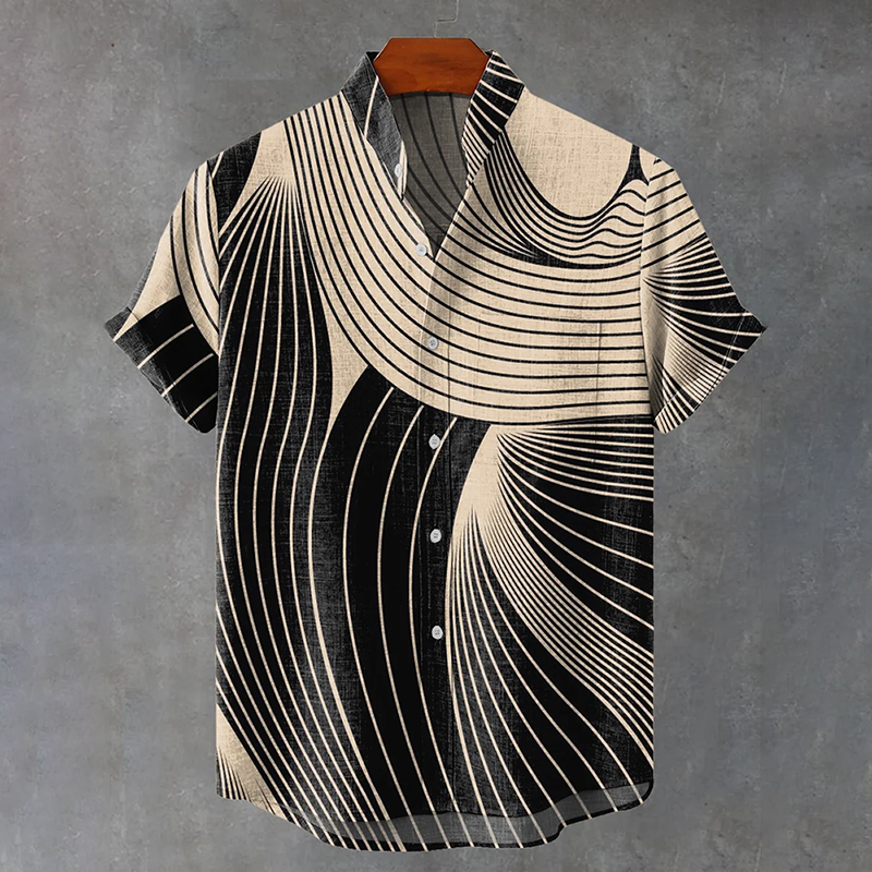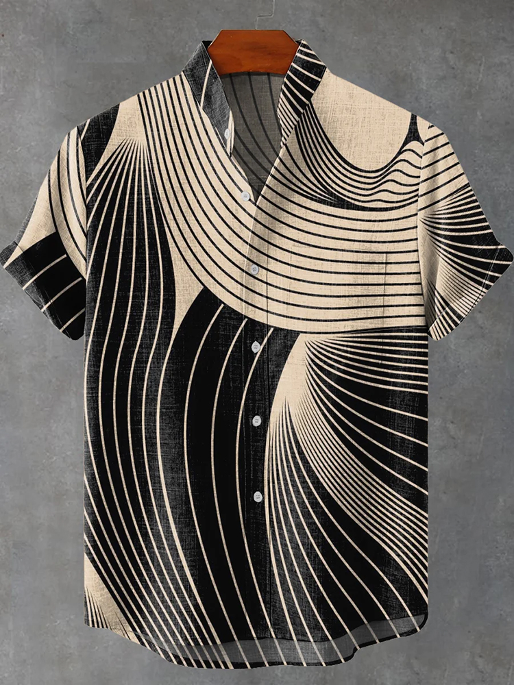 Men's Retro Geometric Line Decorative Pattern Art Print Cotton And Linen Shirt