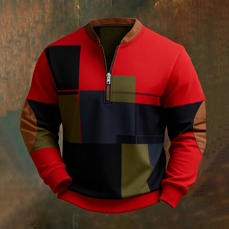 Men's Retro Color-block Print Half Zip Sweatshirt
