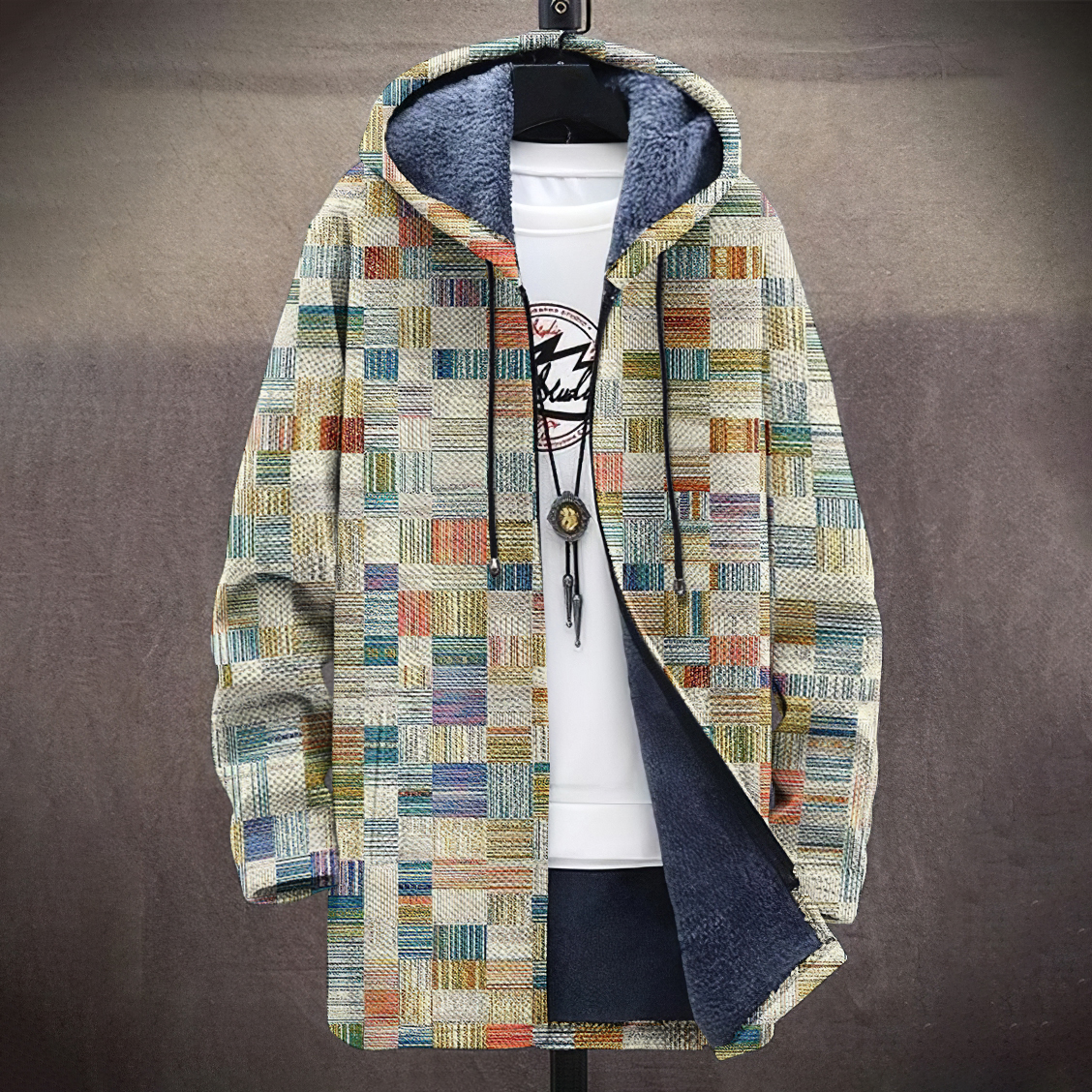 Men's Vintage Abstract Geometric Art Comfort Plush Hooded Coat