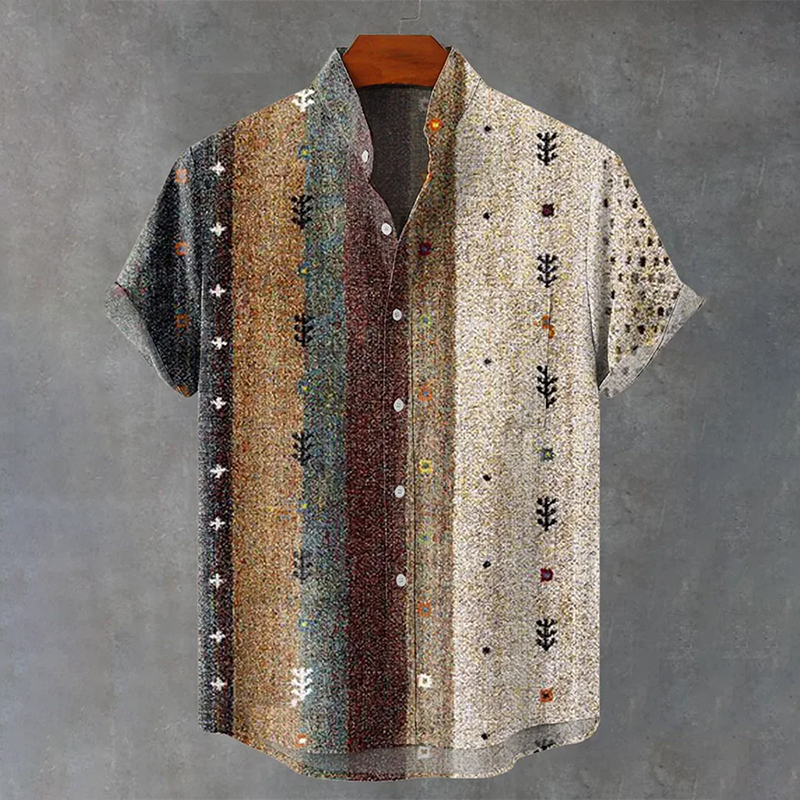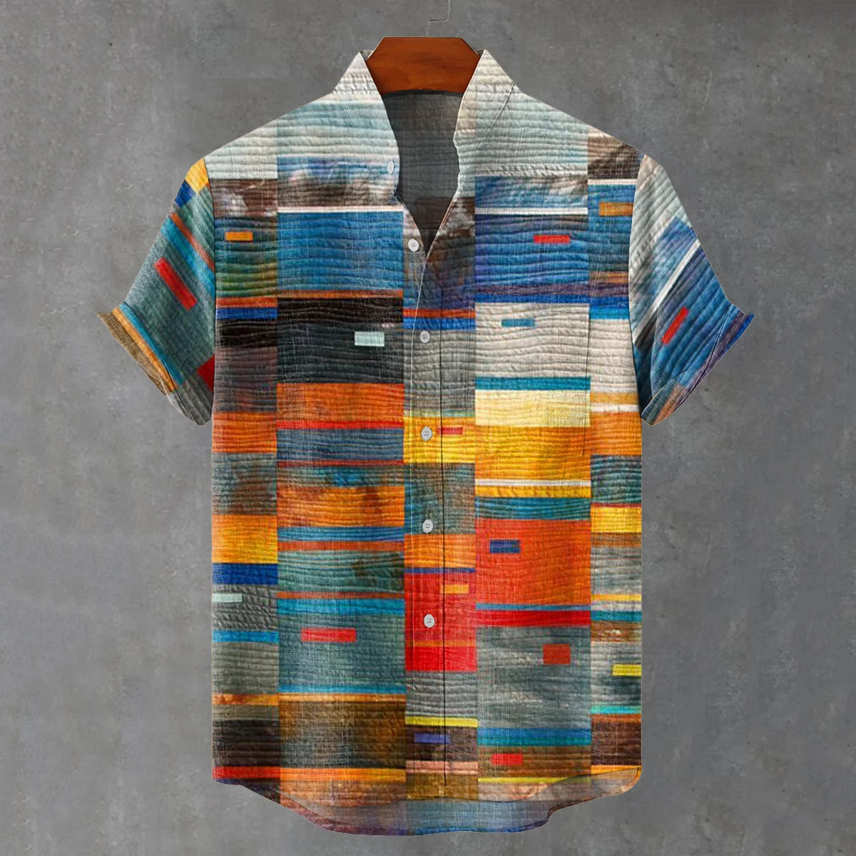 Men's Retro Abstract Color Stripes Geometric Art Print Cotton And Linen Shirt