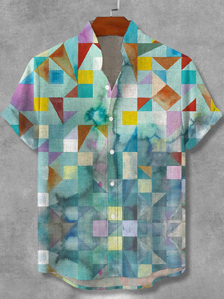Vintage Patchwork Squares Japanese Patterns Linen Shirt