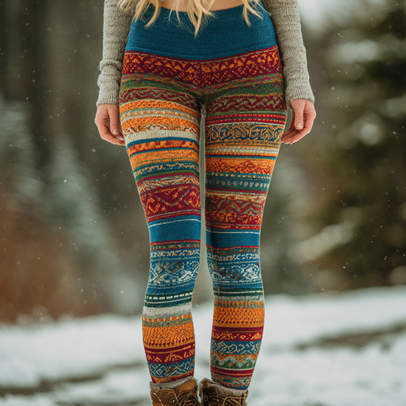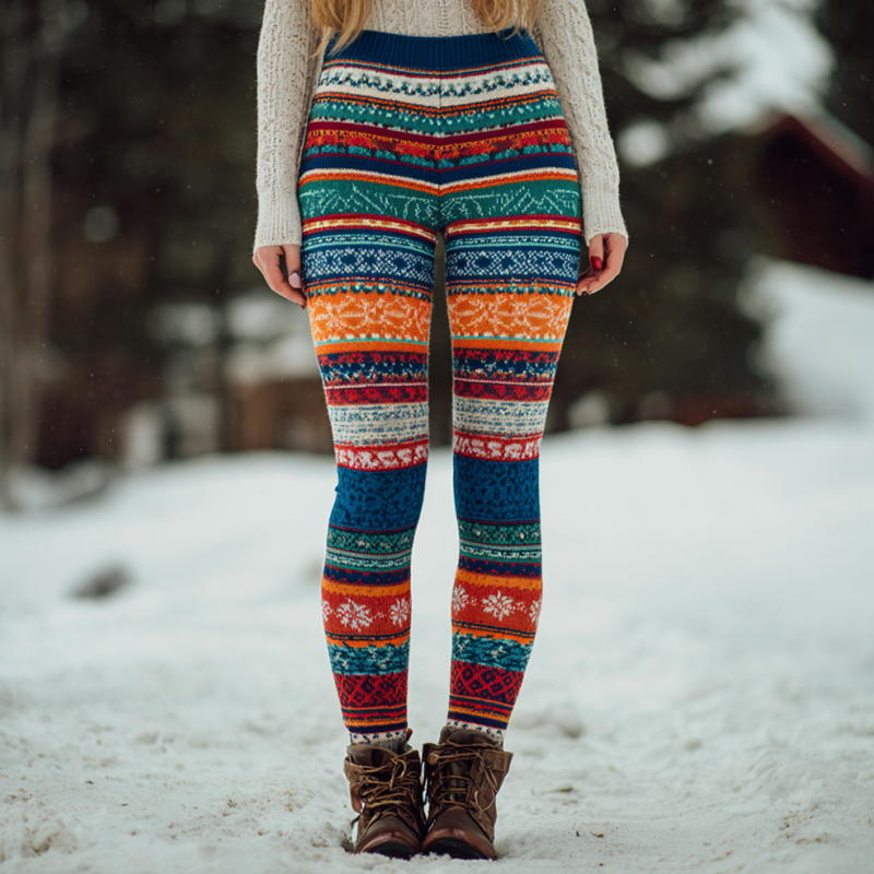 Women's Fair Isle Jacquard Knit Casual Knitted Leggings