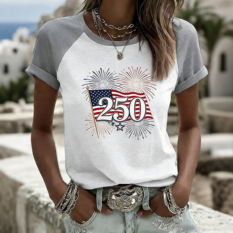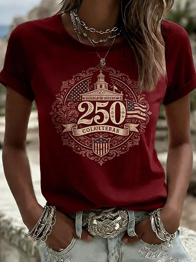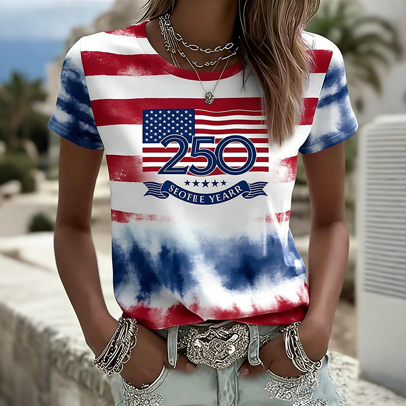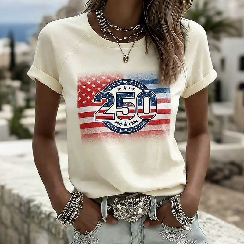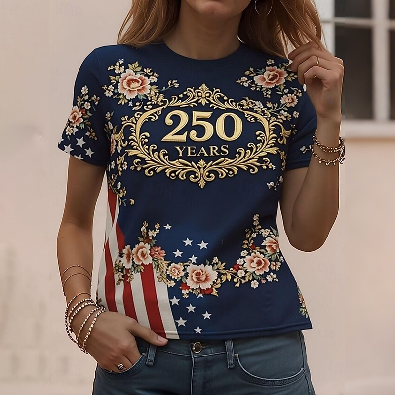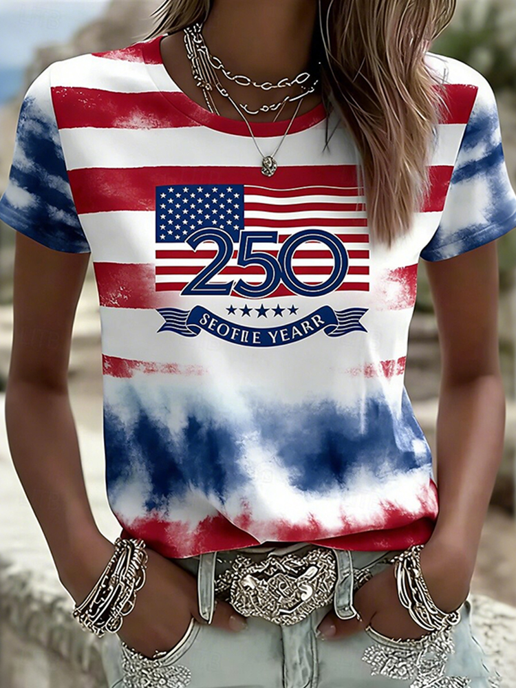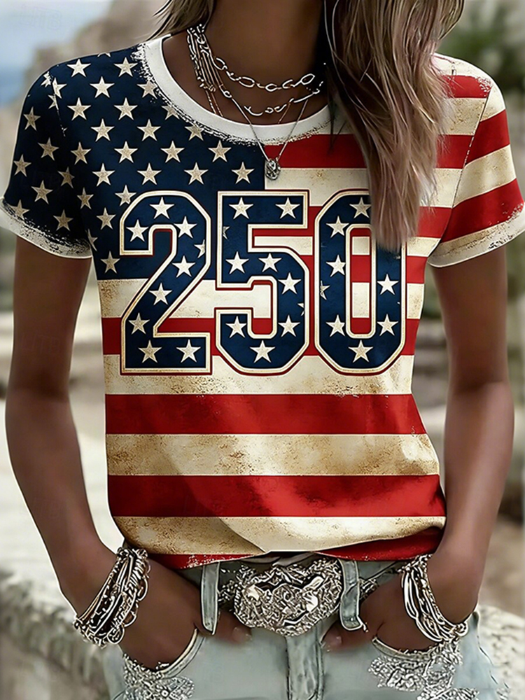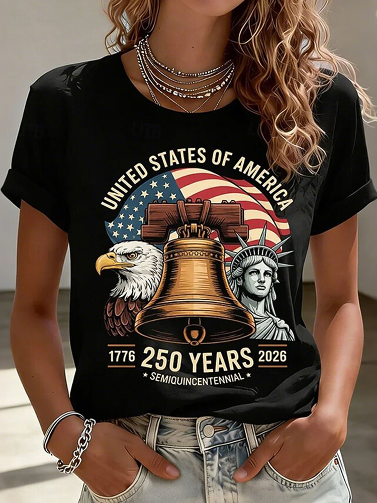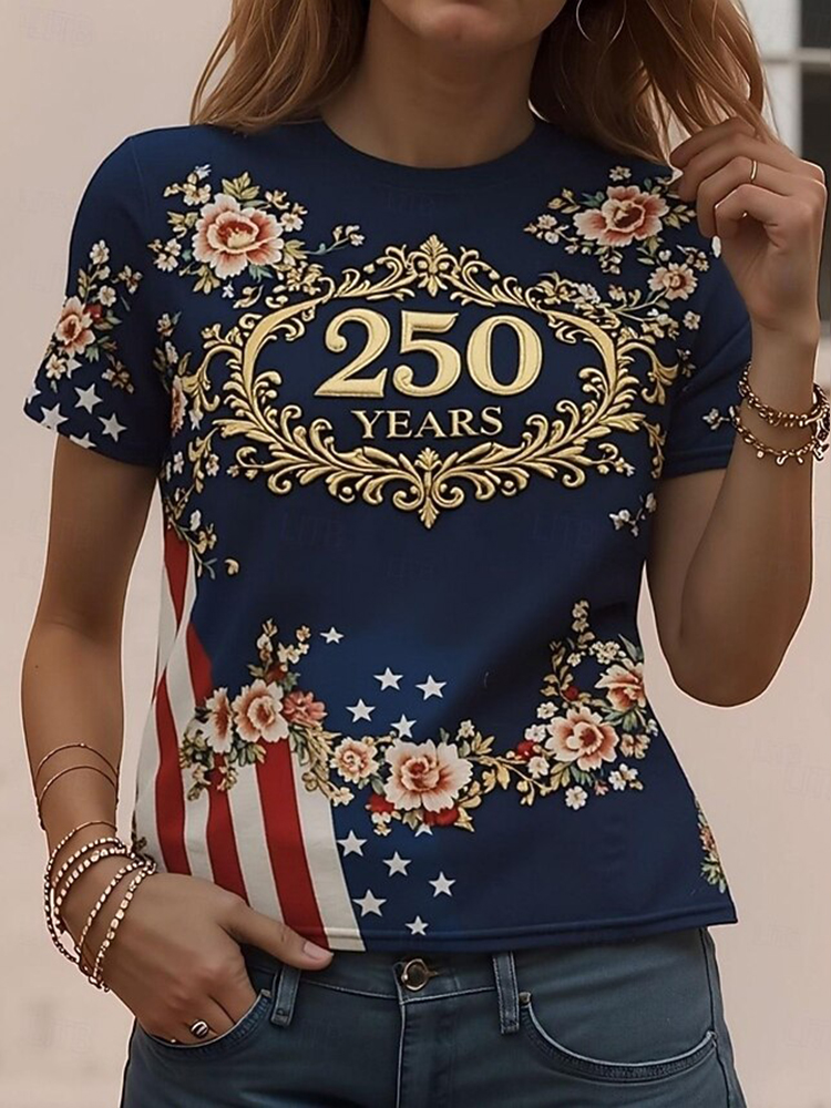 Women's Casual American 250th Anniversary Print Round Neck T Shirt