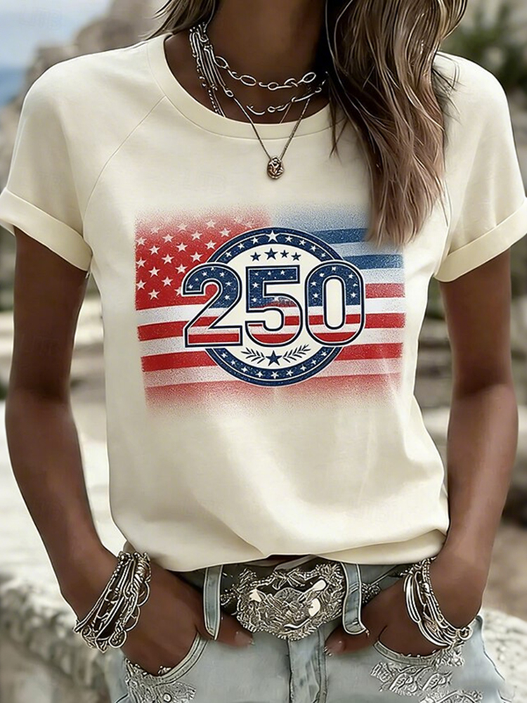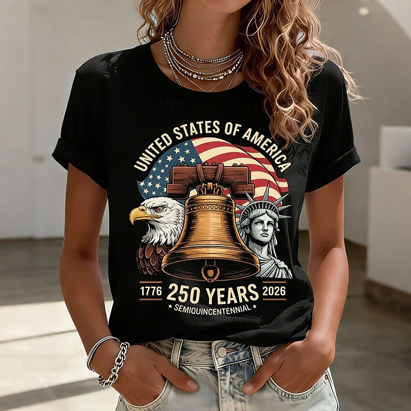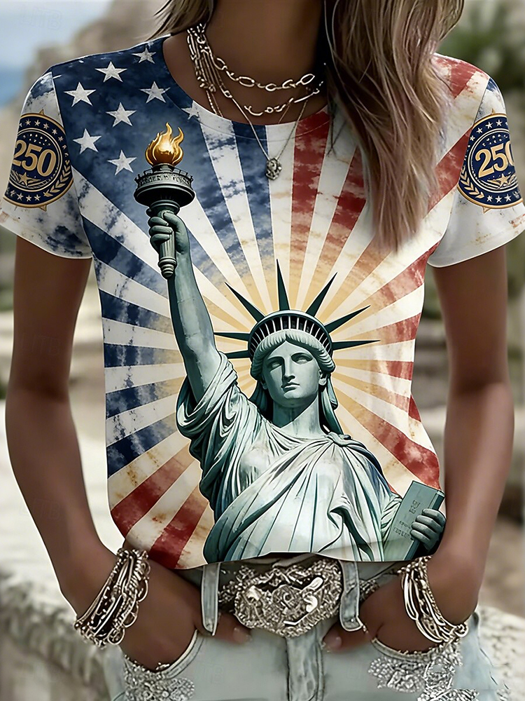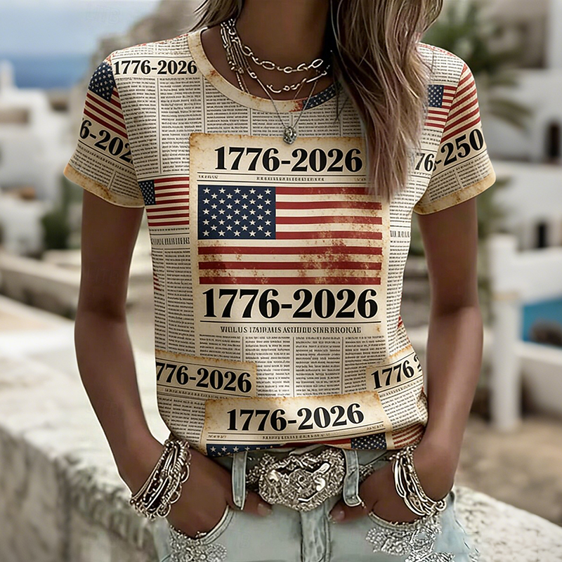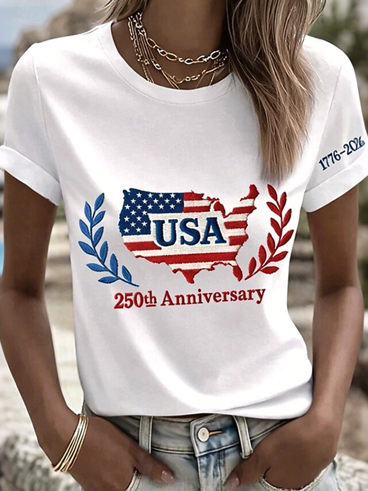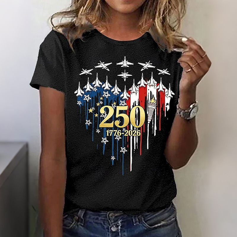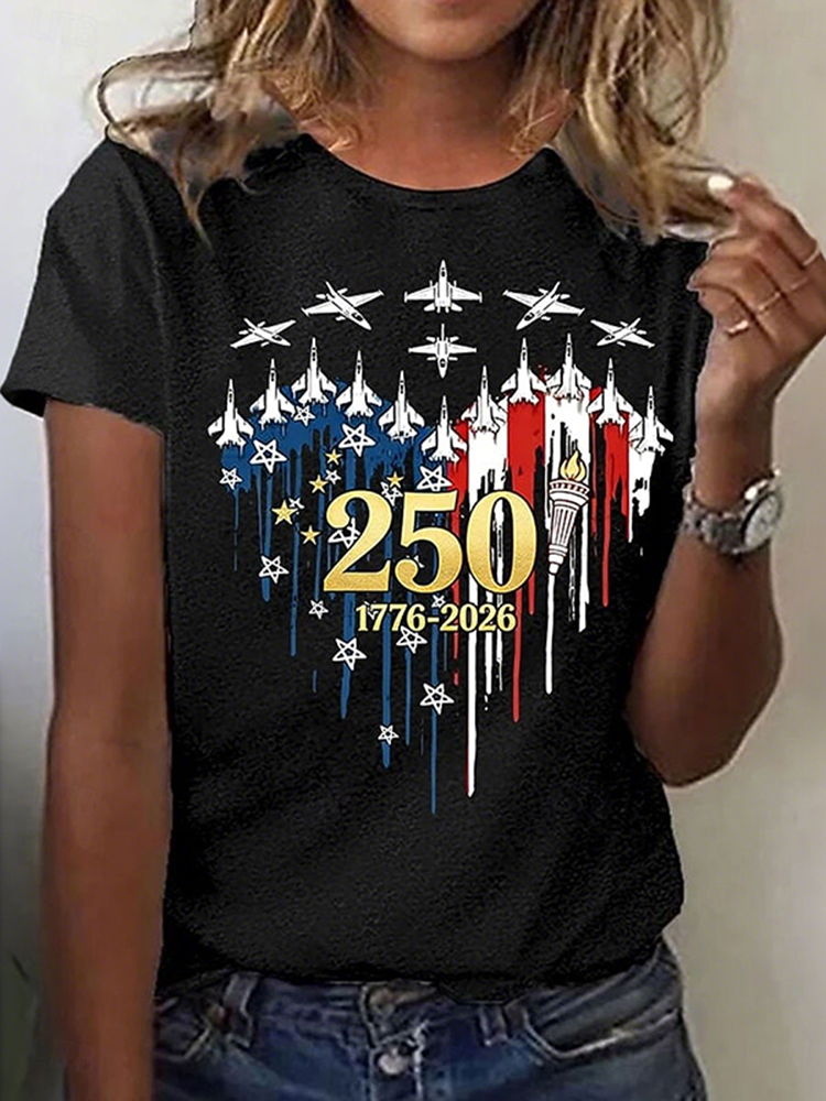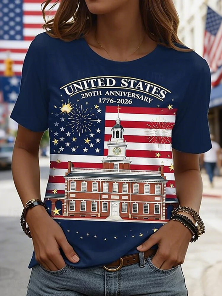 Women's Casual American 250th Anniversary Print Round Neck T Shirt