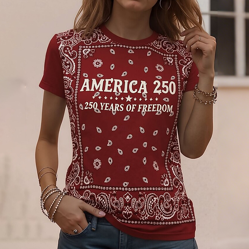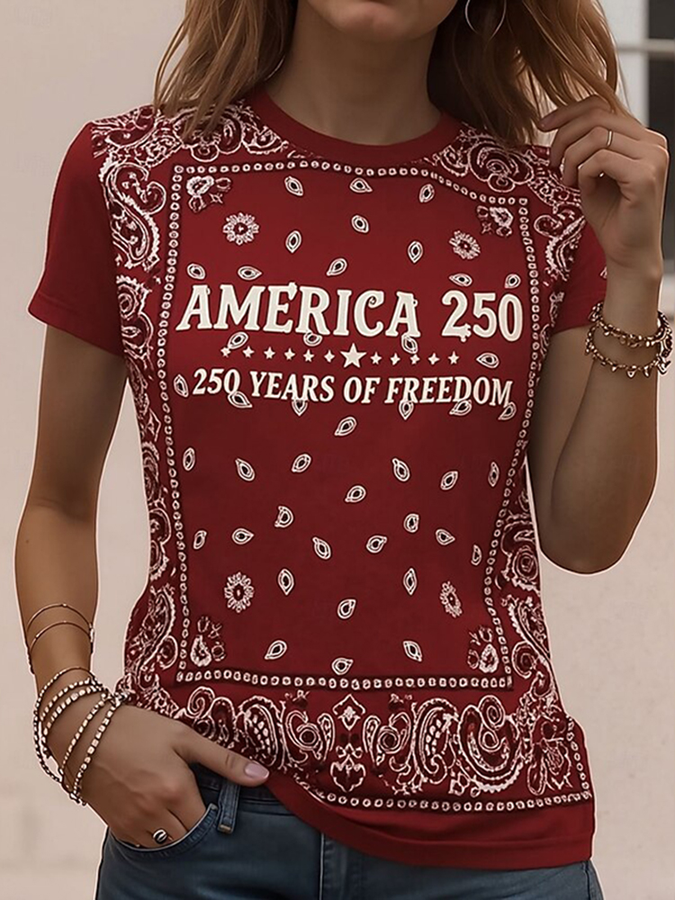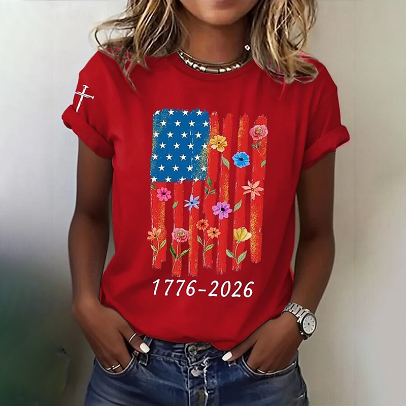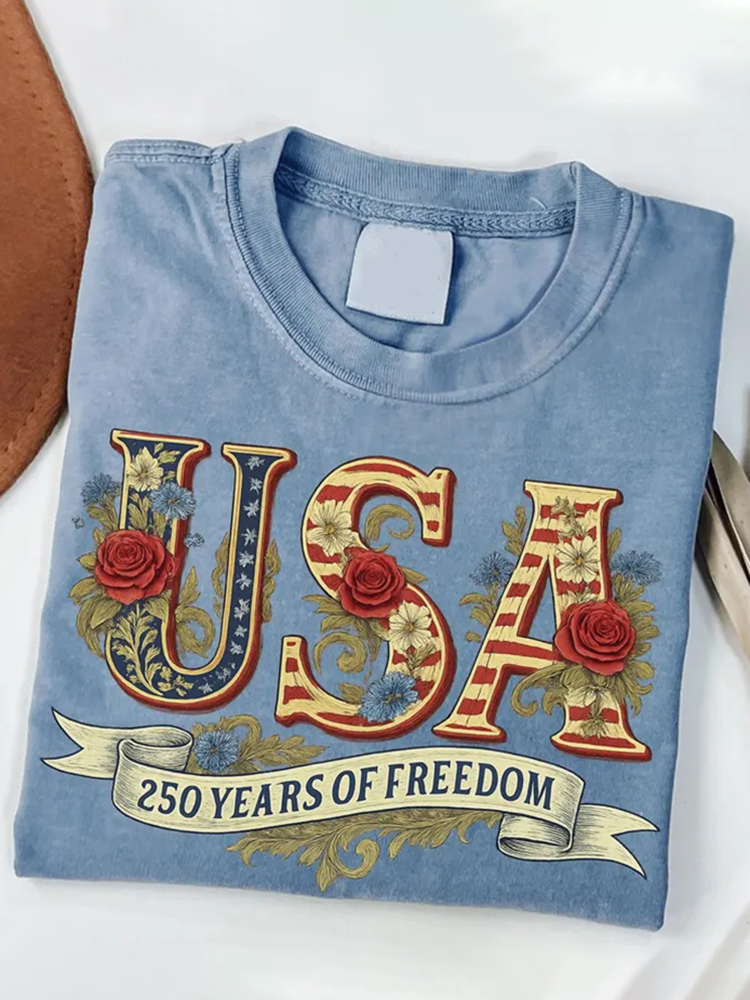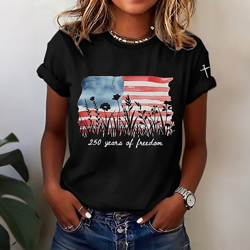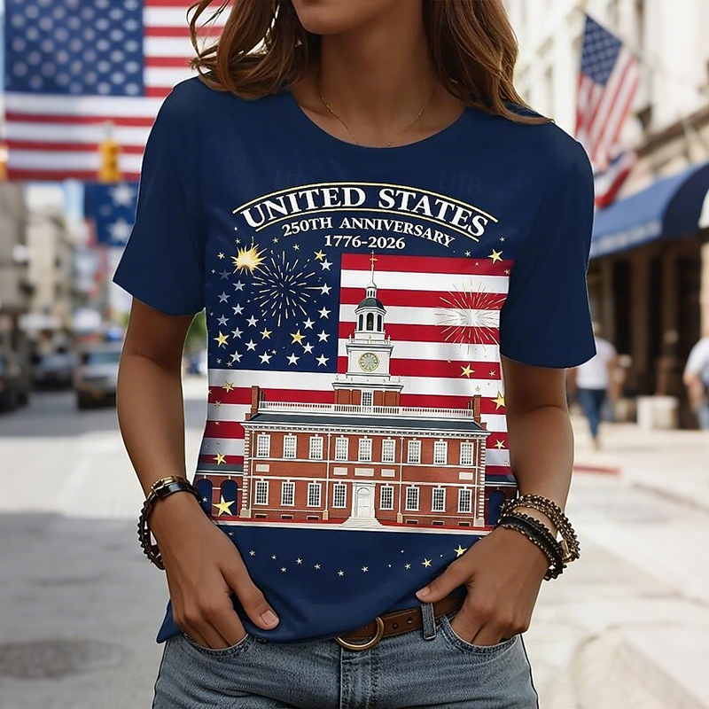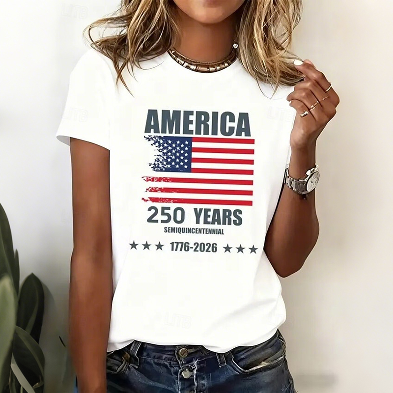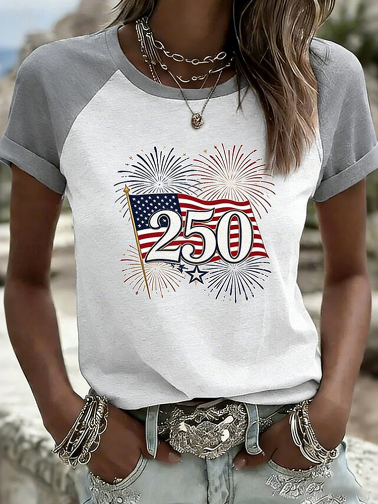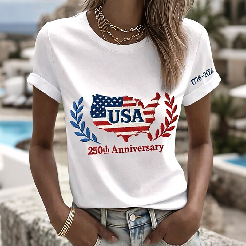 Women's Casual American 250th Anniversary Print Round Neck T Shirt