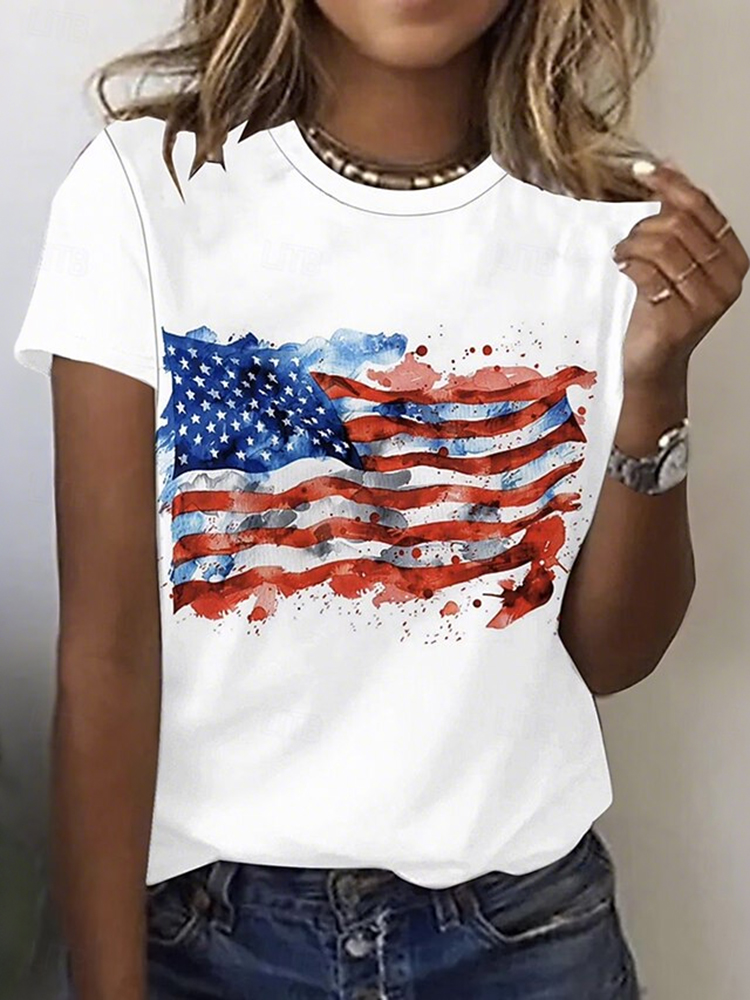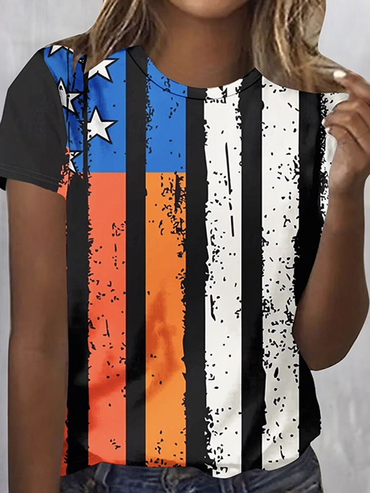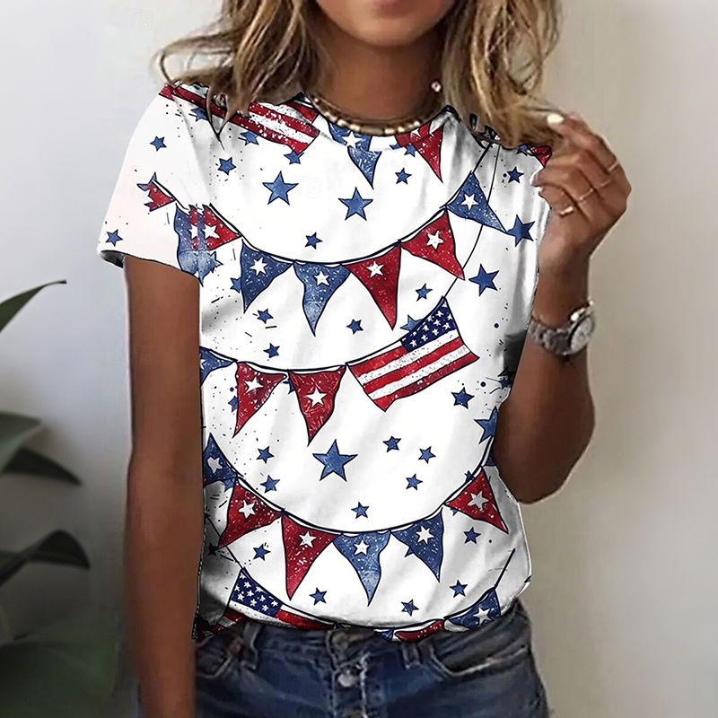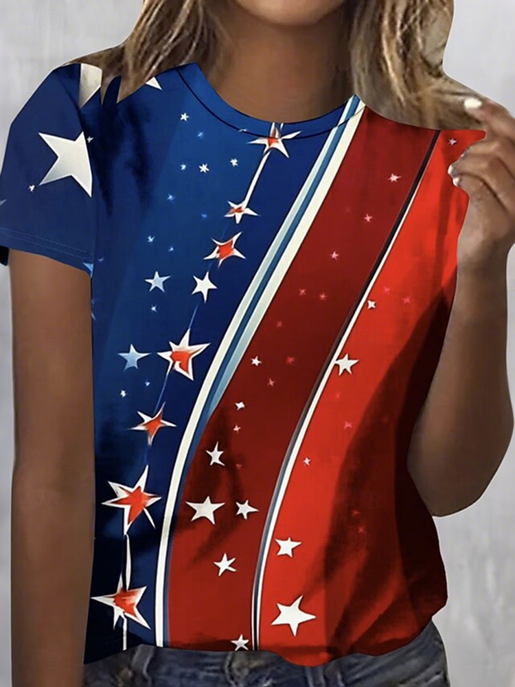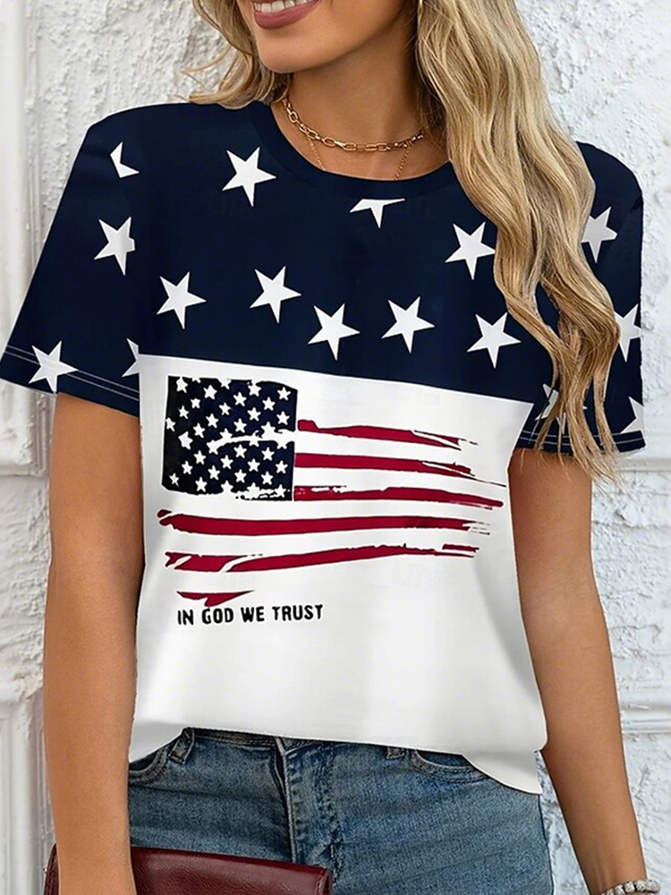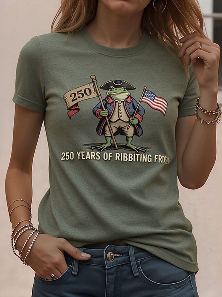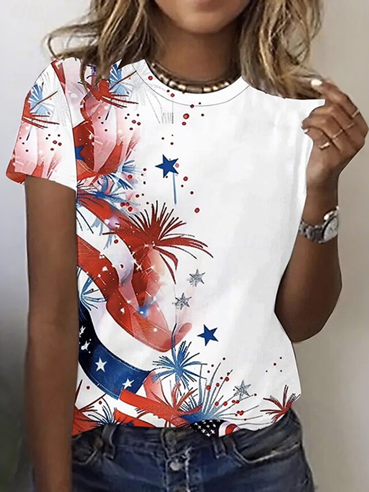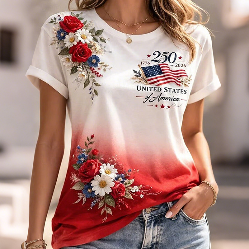 Women's Casual American 250th Anniversary Print Round Neck T Shirt