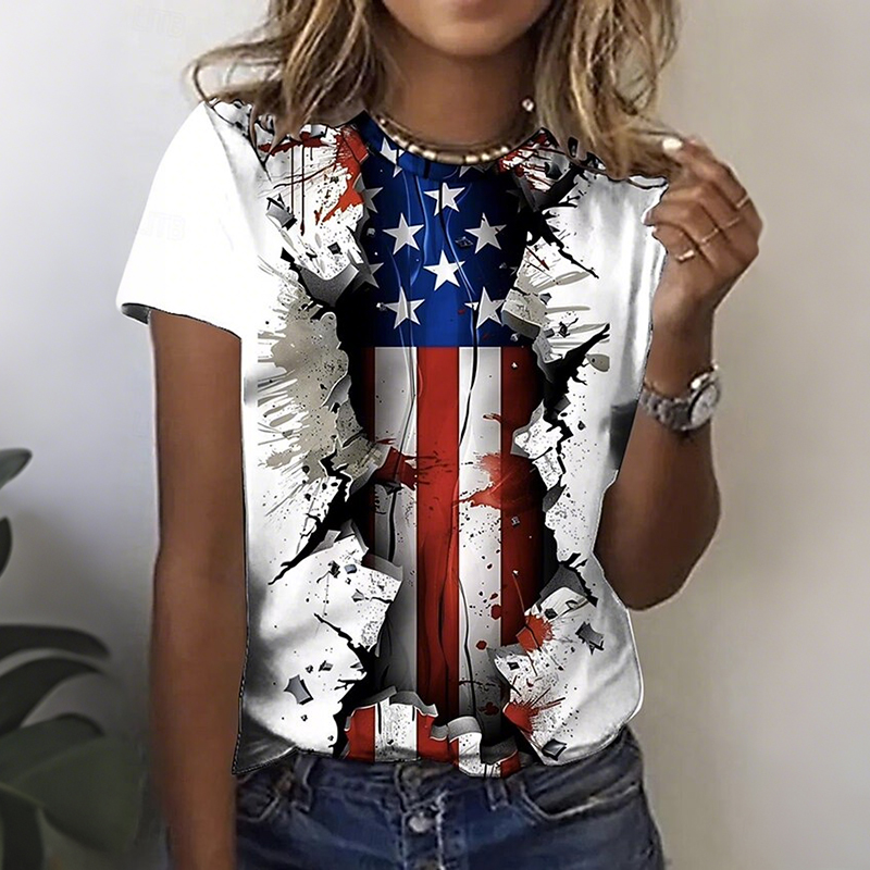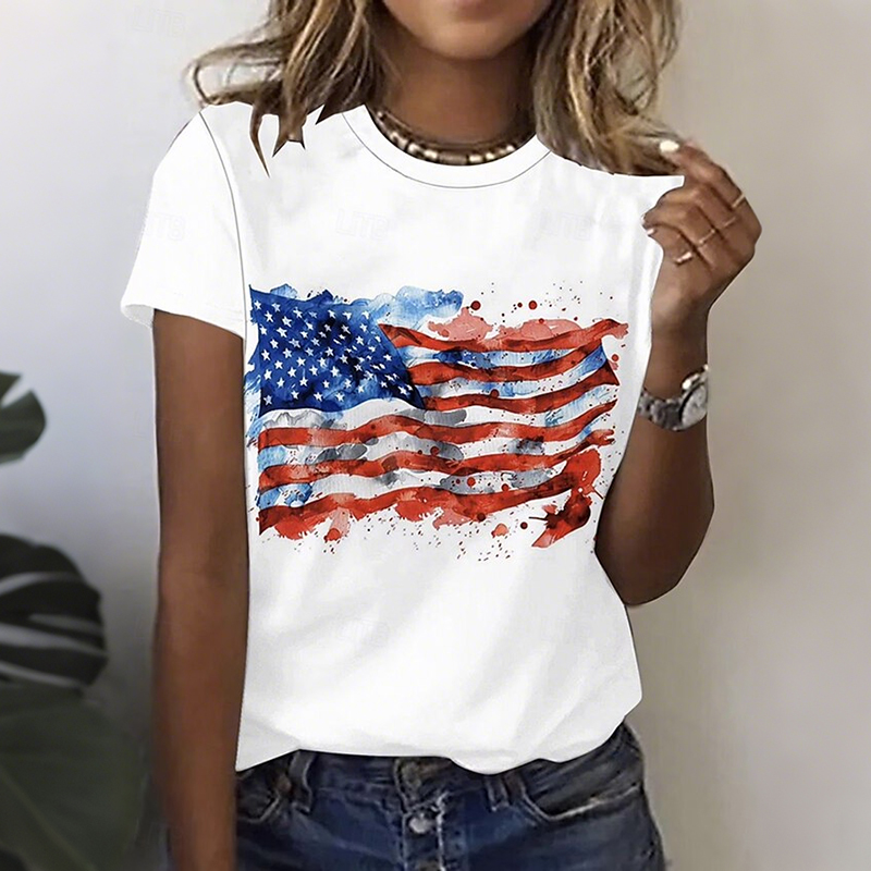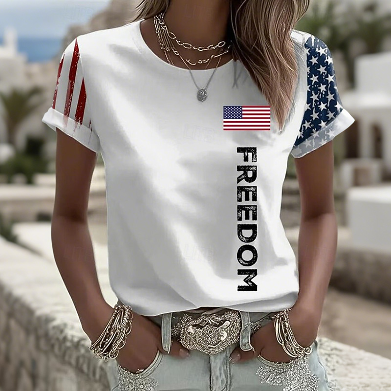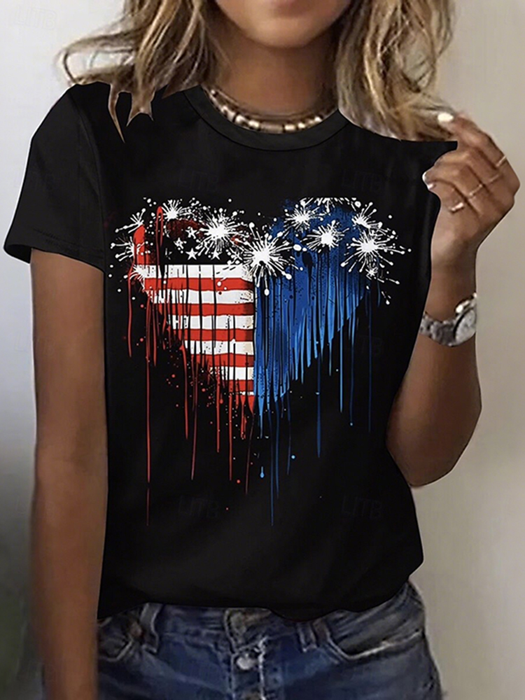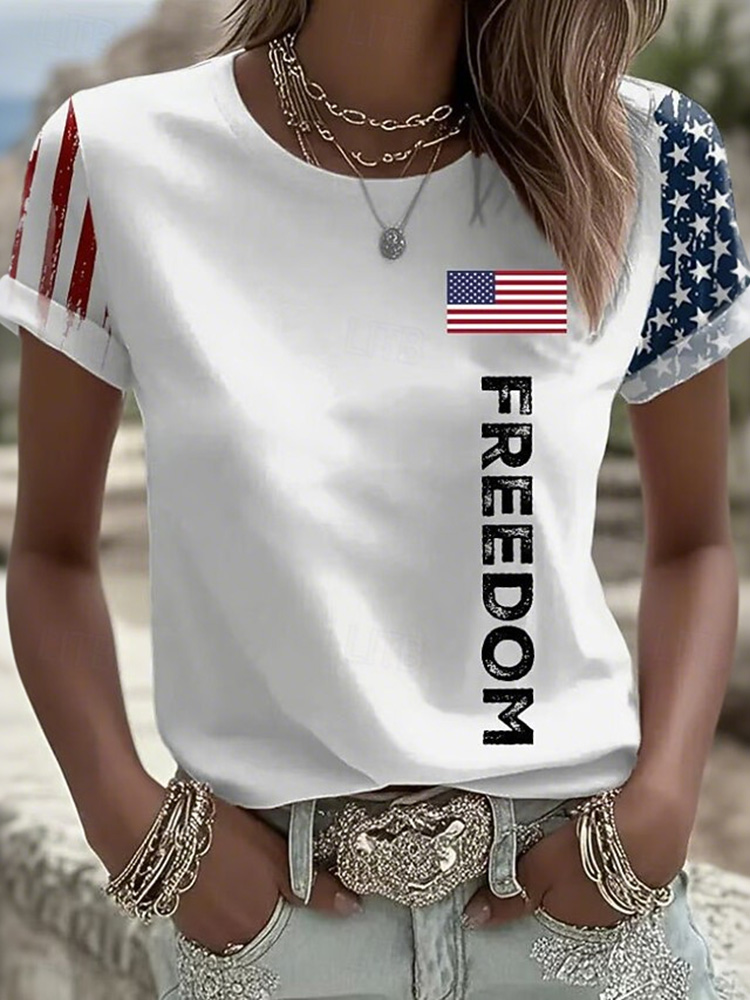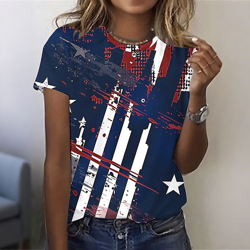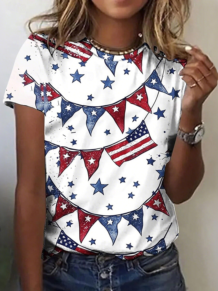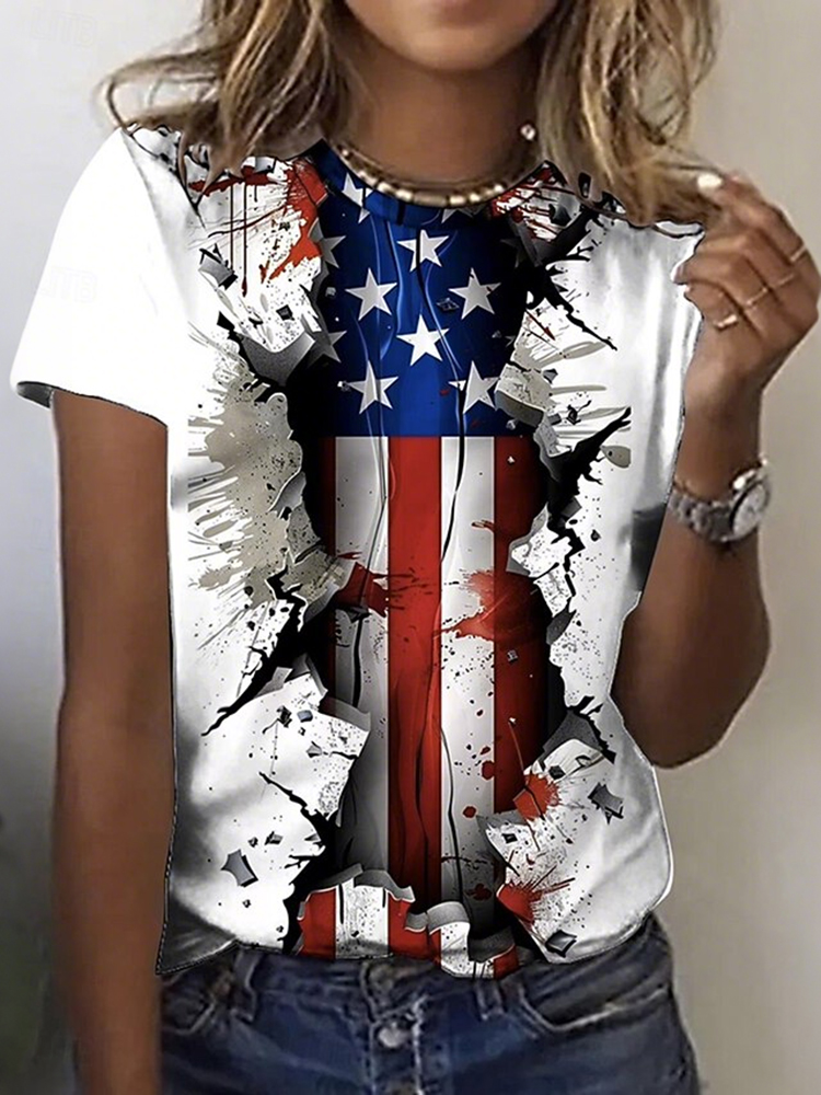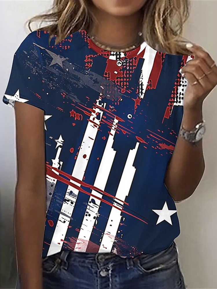 Women's Casual American 250th Anniversary Print Round Neck T Shirt