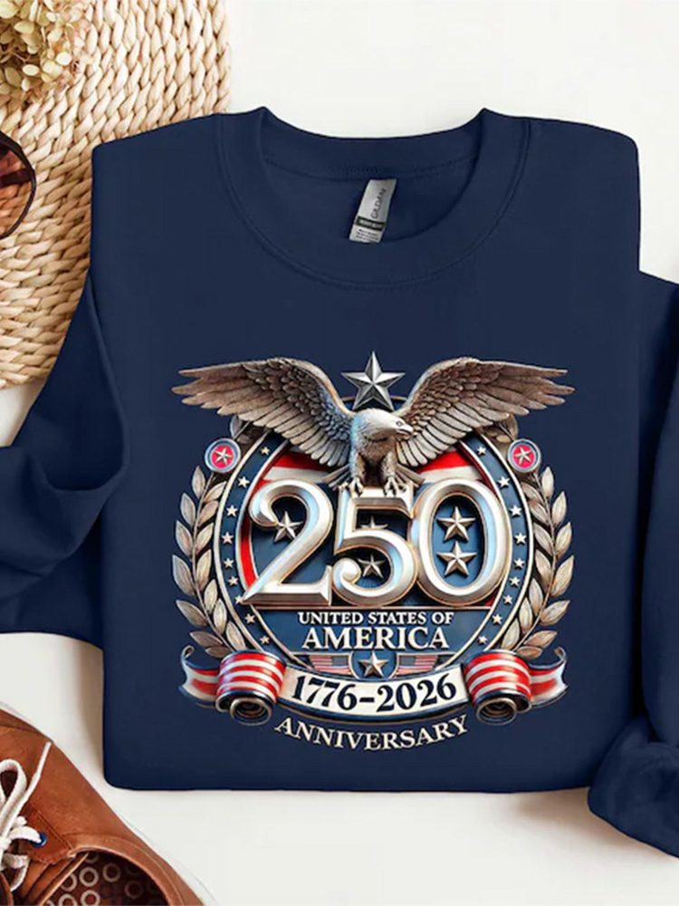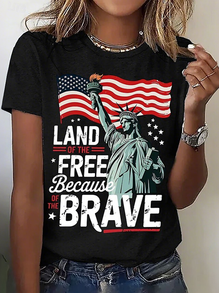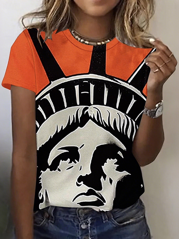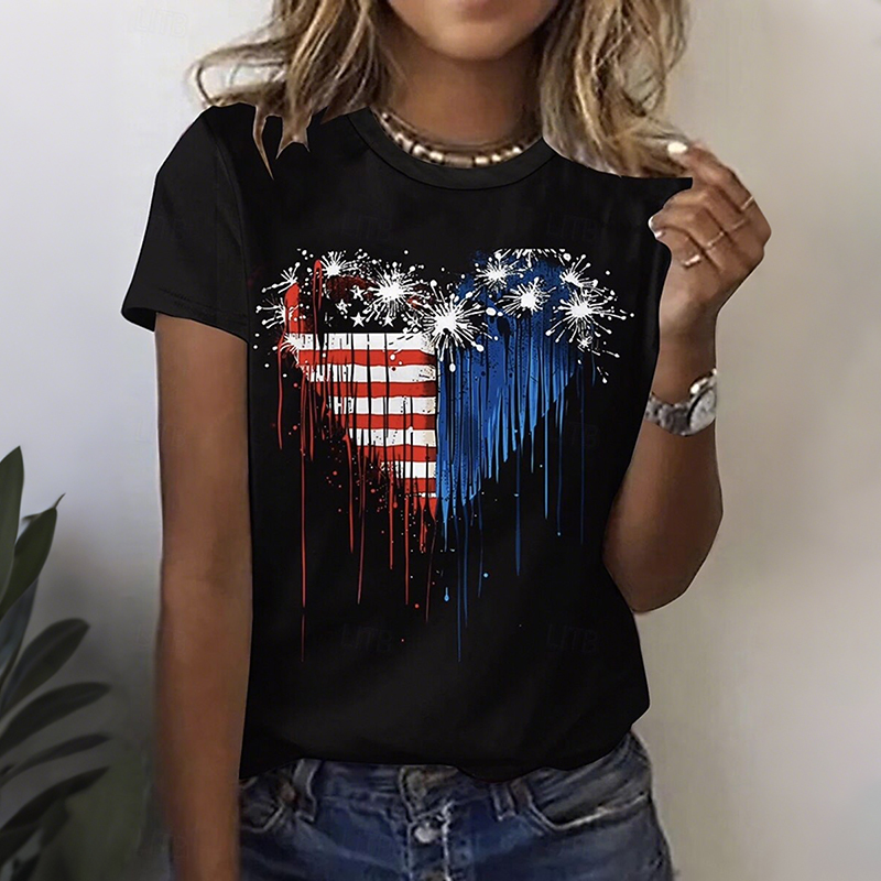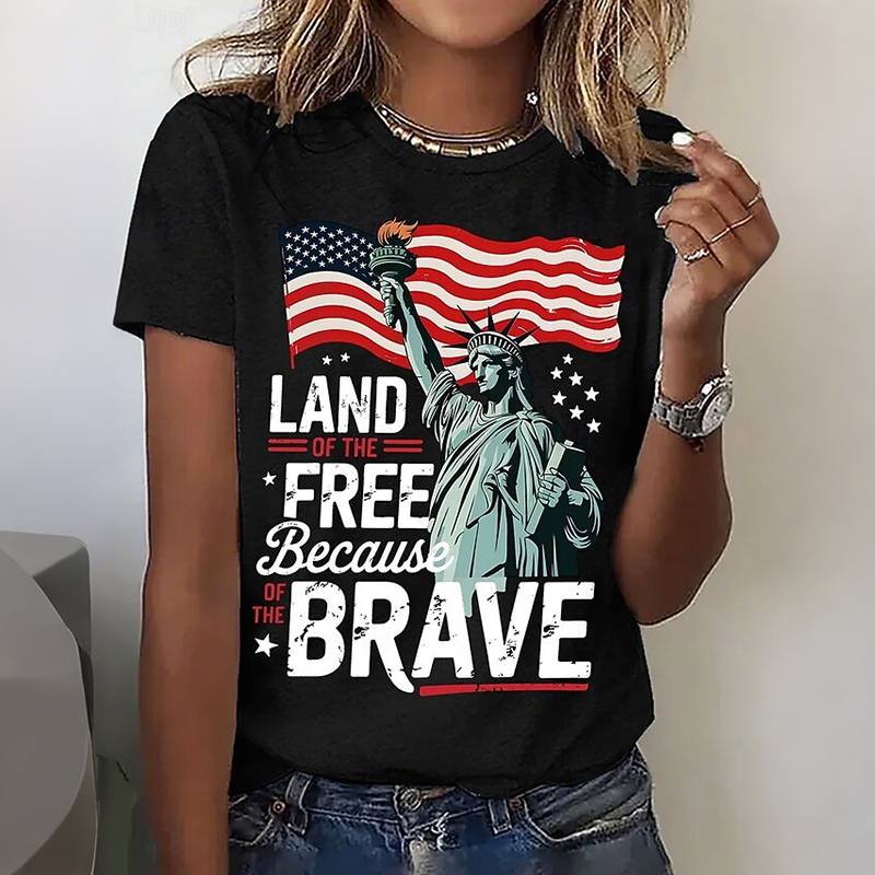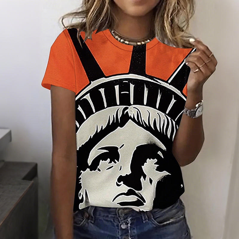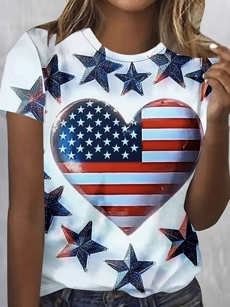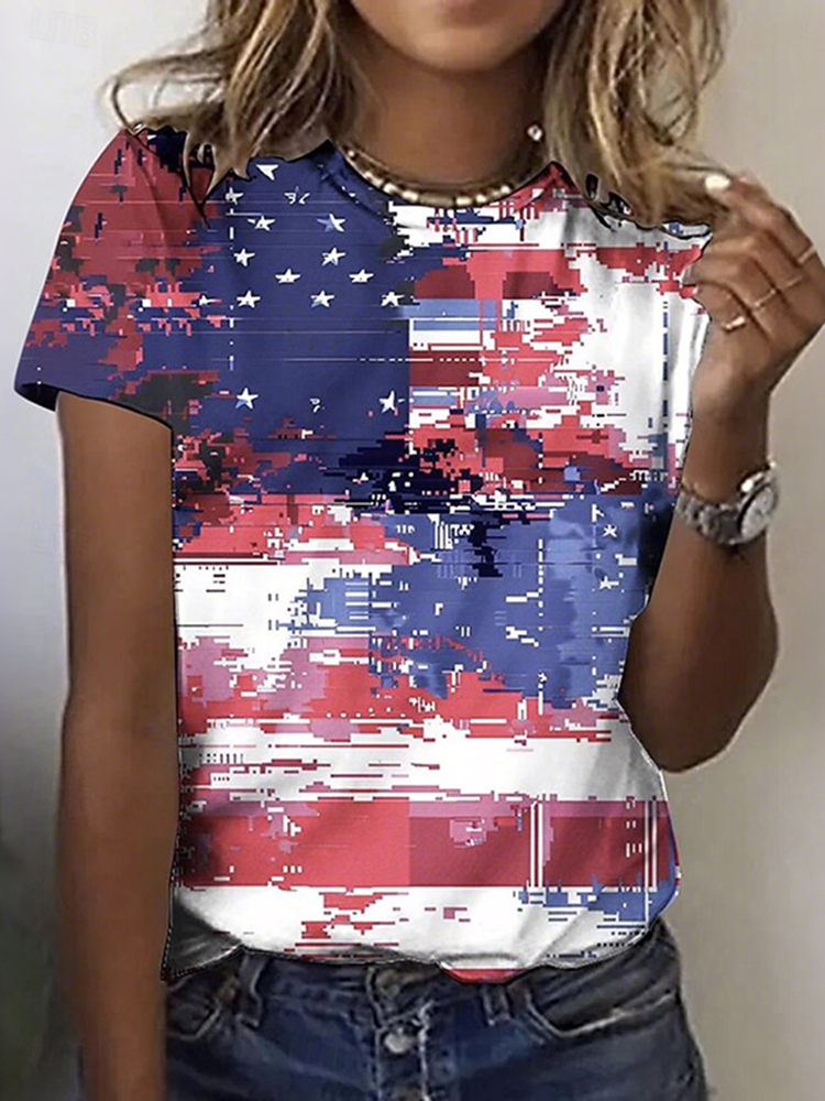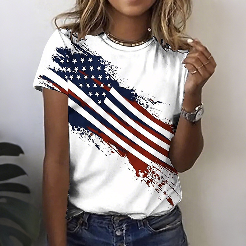 Women's Casual American 250th Anniversary Print Round Neck T Shirt