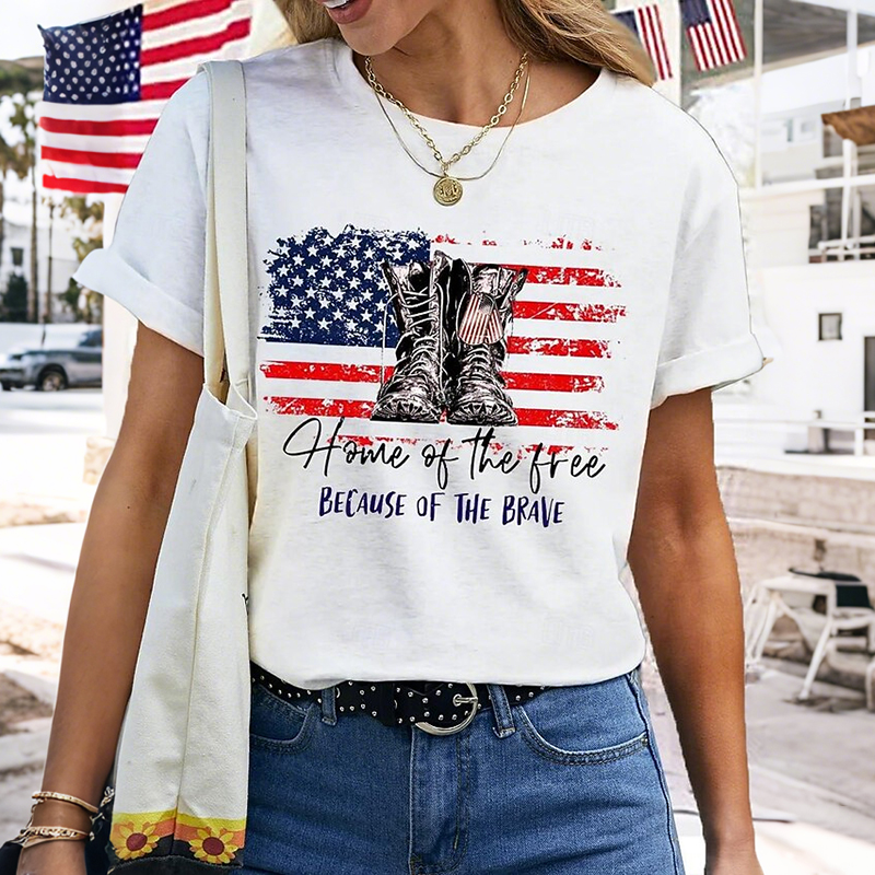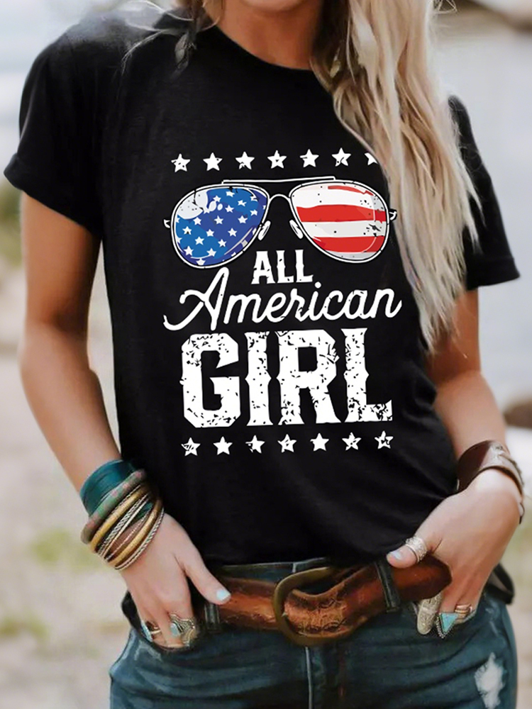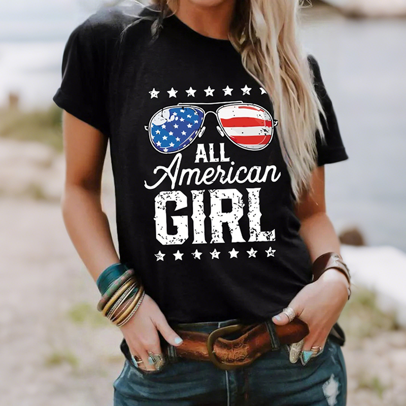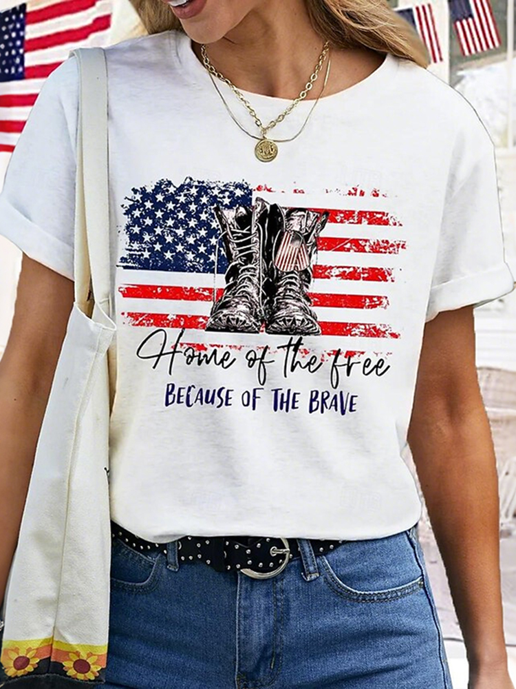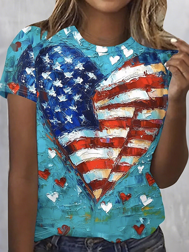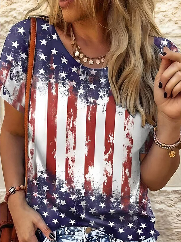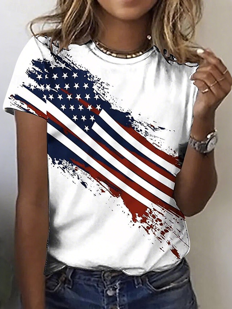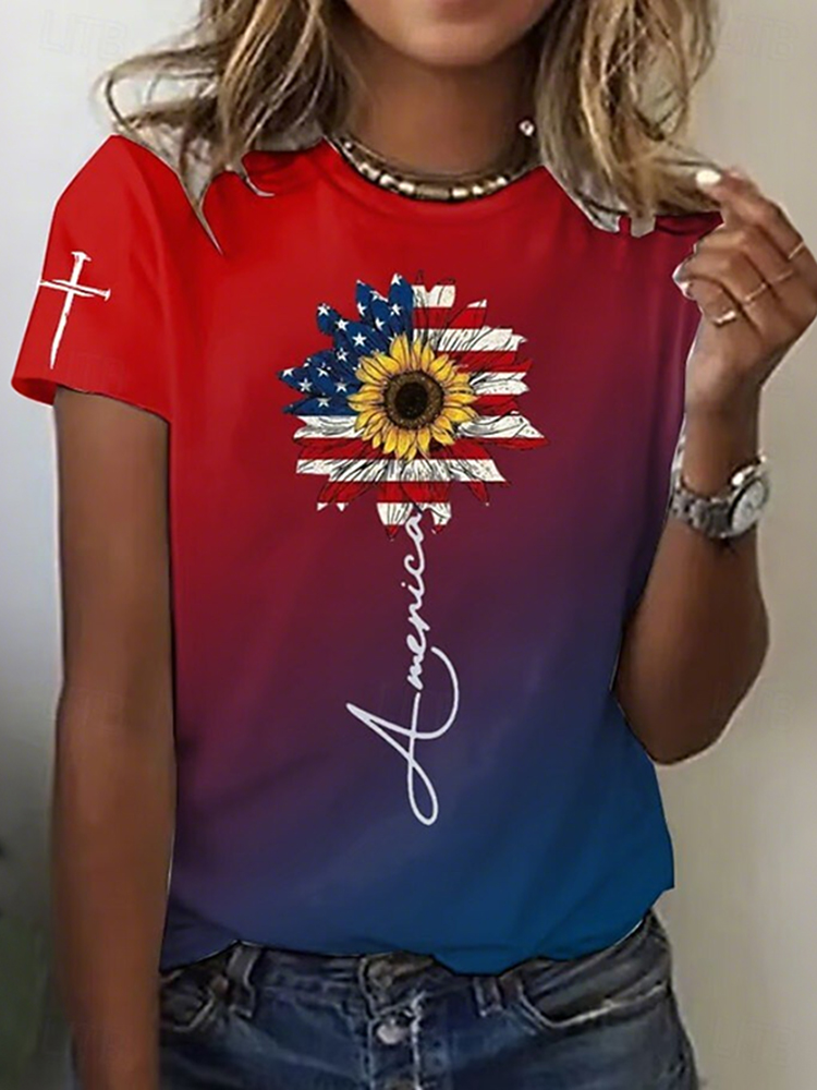 Women's Casual American 250th Anniversary Print Round Neck T Shirt