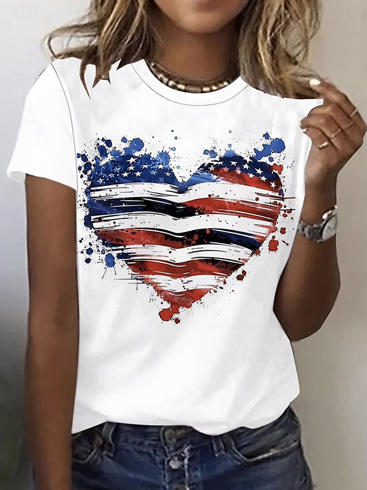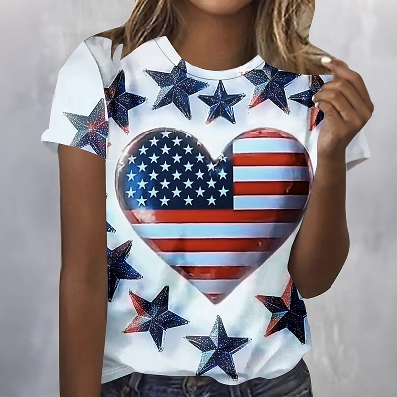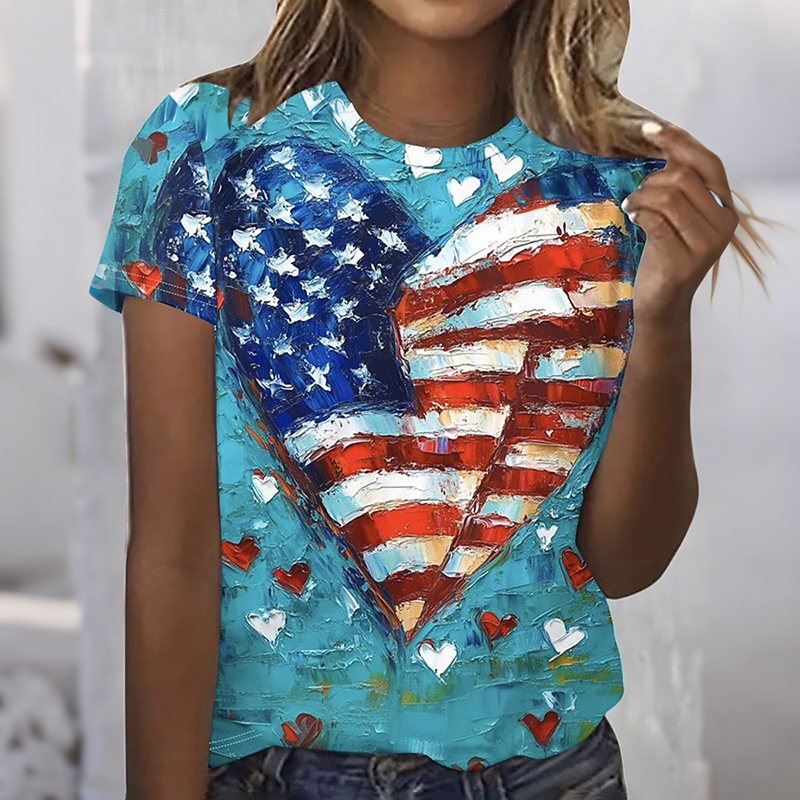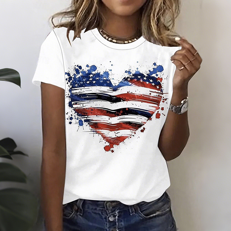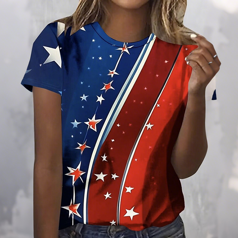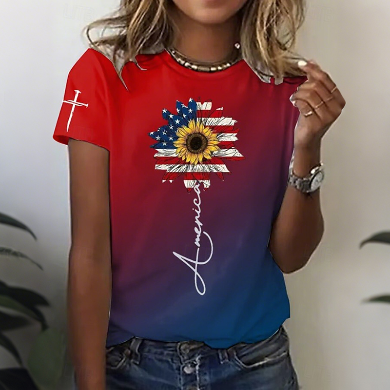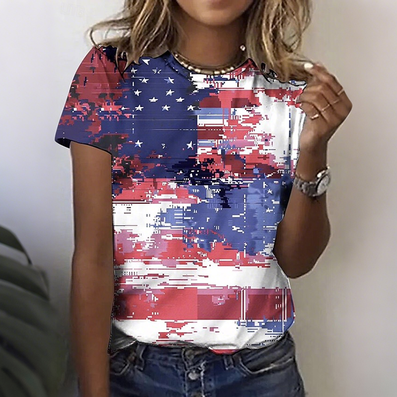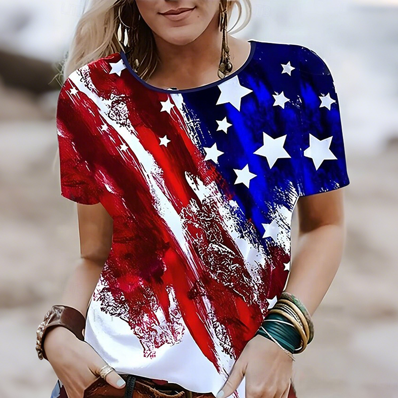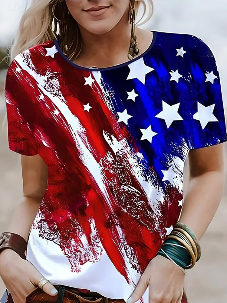 Women's Casual American 250th Anniversary Patriotic Print Round Neck T Shirt