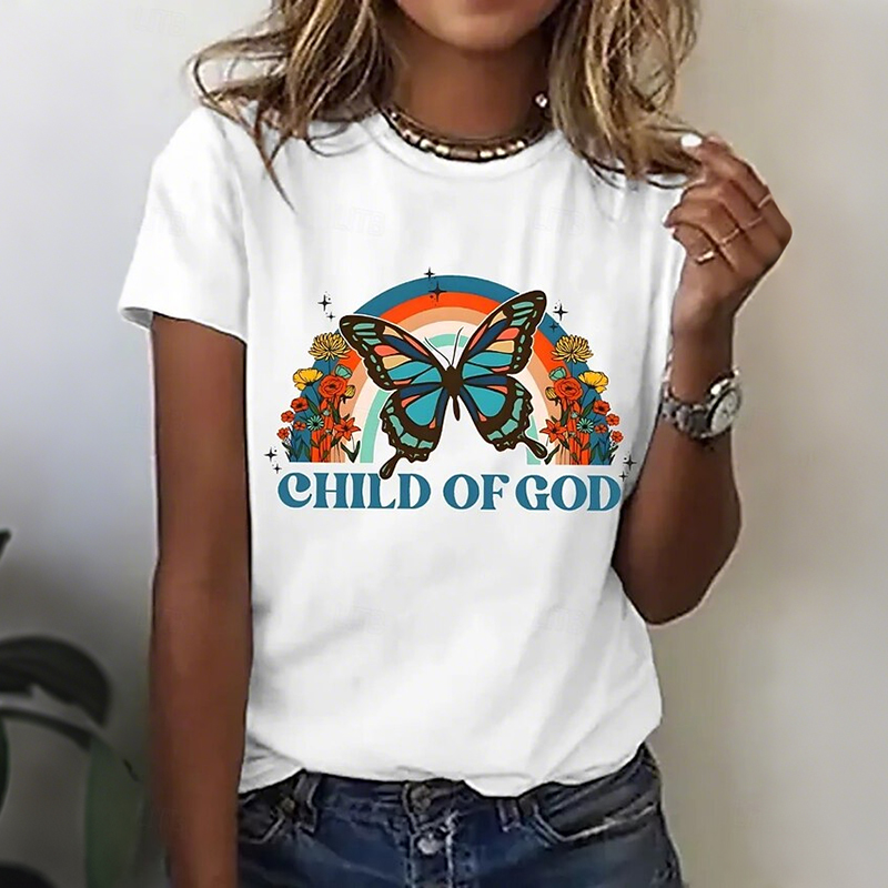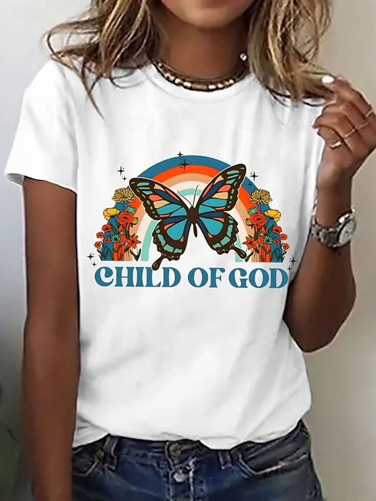 Women's American 250th Anniversary Butterfly Round Neck T Shirt