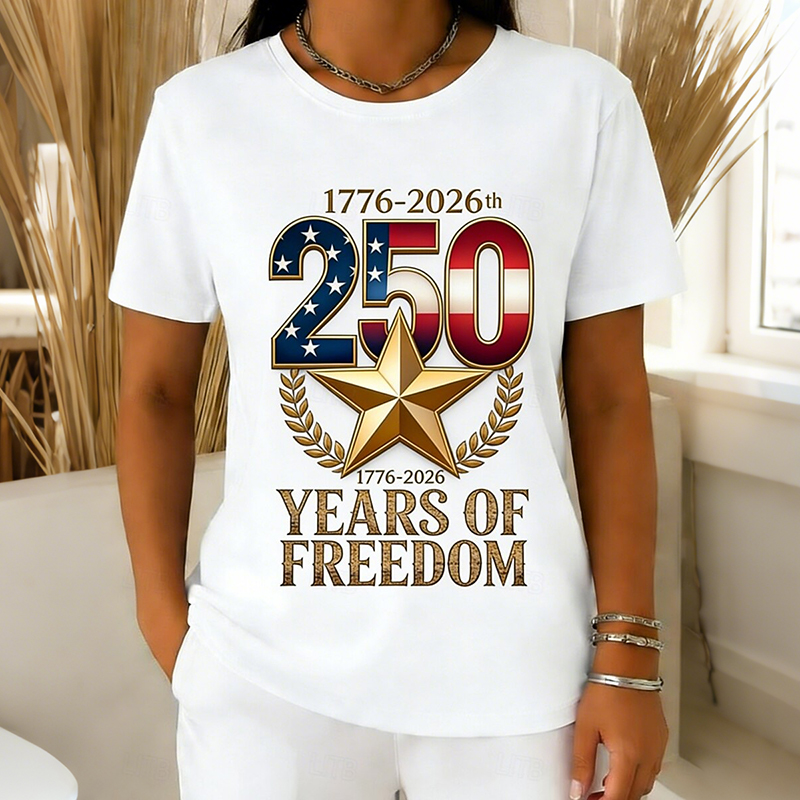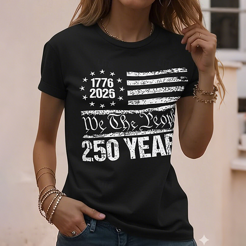 Women's Casual American 250th Anniversary Round Neck T Shirt