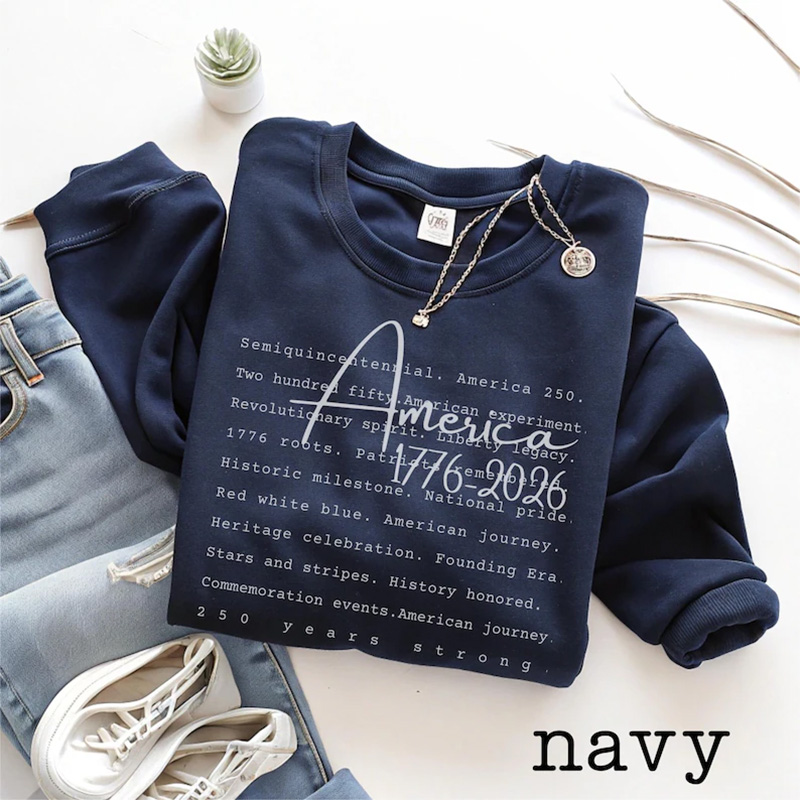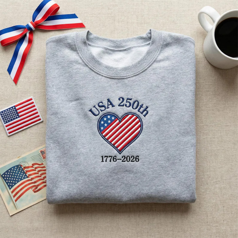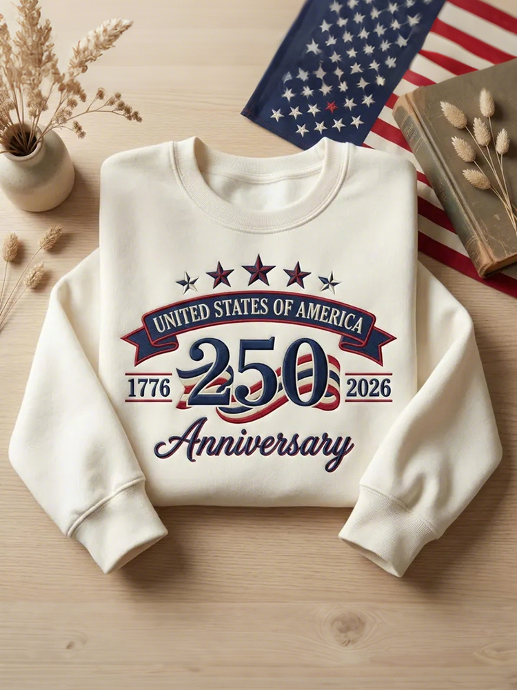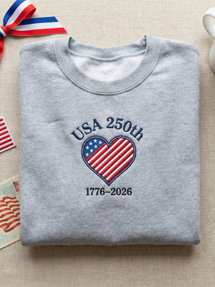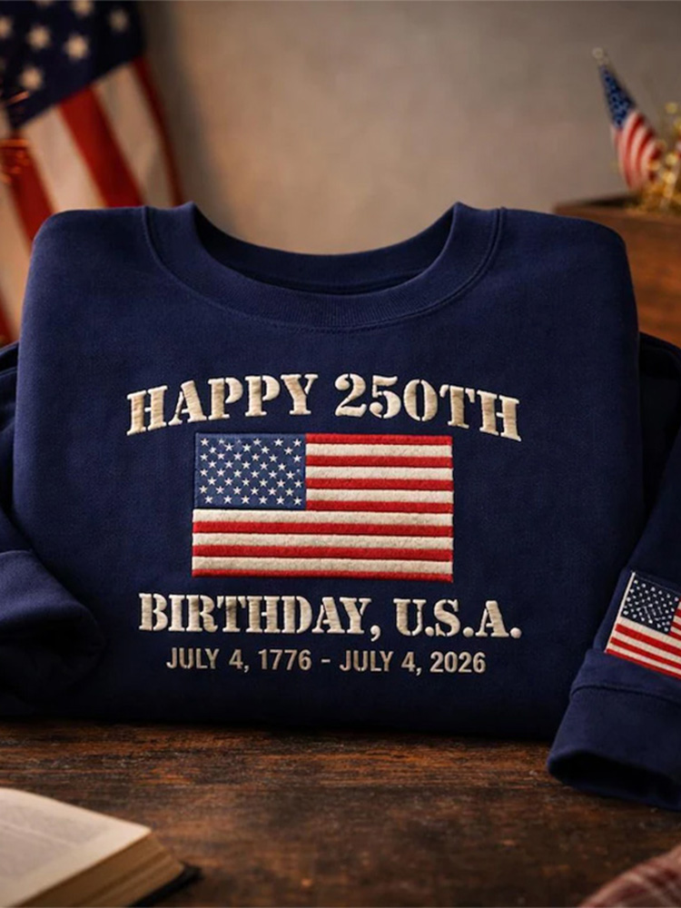 Embroidered American Crewneck, Usa 250 Years Patriotic Sweatshirt