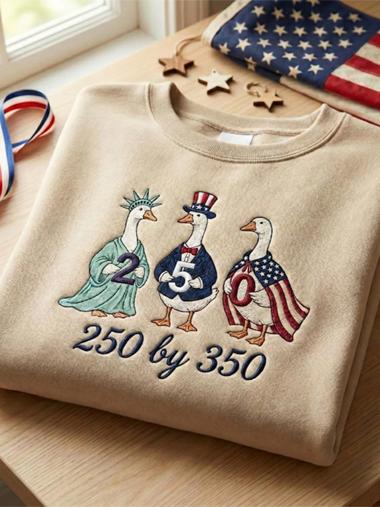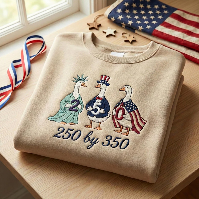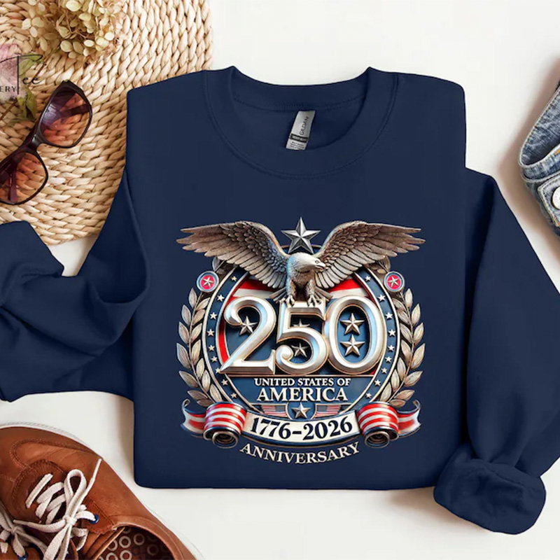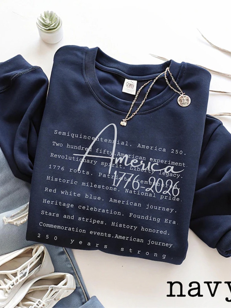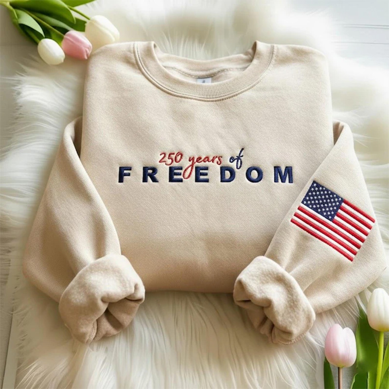Embroidered American Crewneck, Usa 250 Years Patriotic Sweatshirt