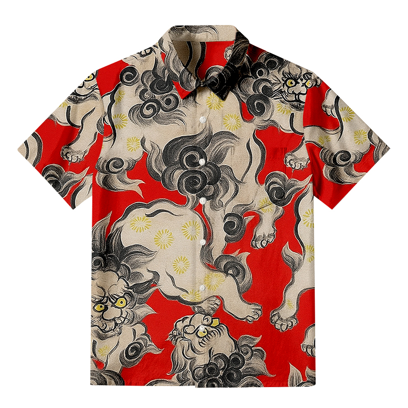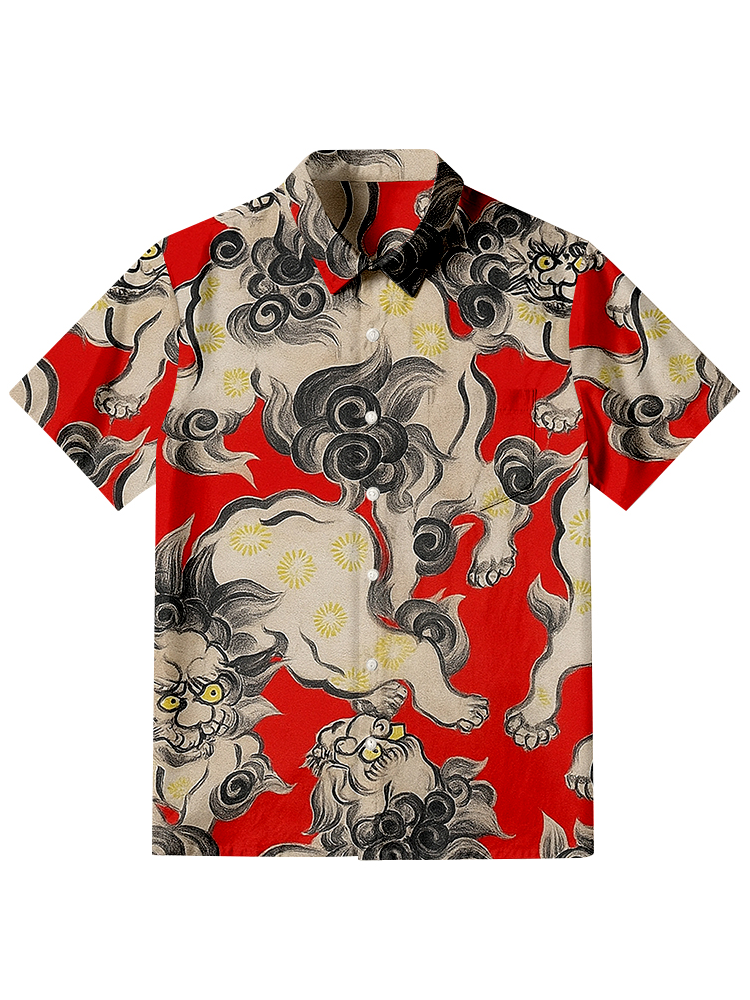 Japanese Kara Zishi Lion Button-up Shirt