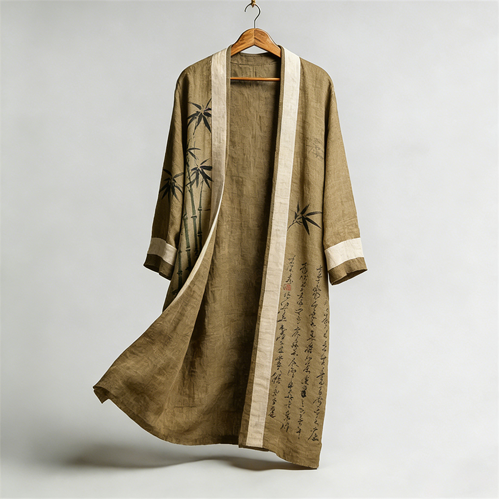 Retro Japanese Bamboo Patterned Linen Flowing Kimono