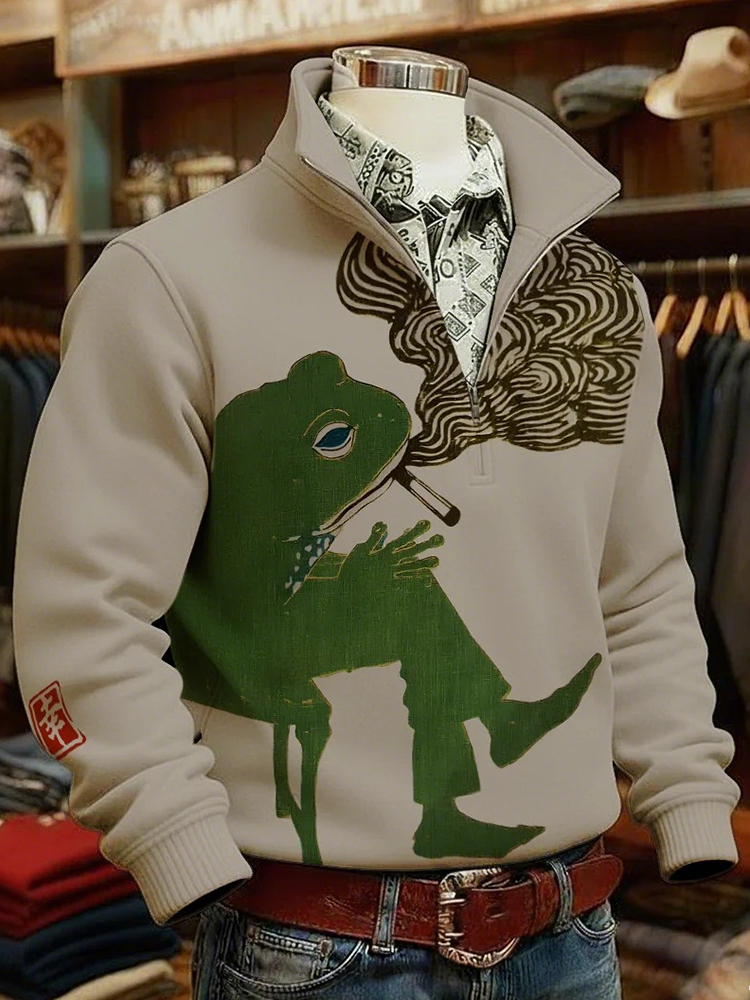 Men's Japanese Art Frog Pattern Quarter Zip Sweatshirt