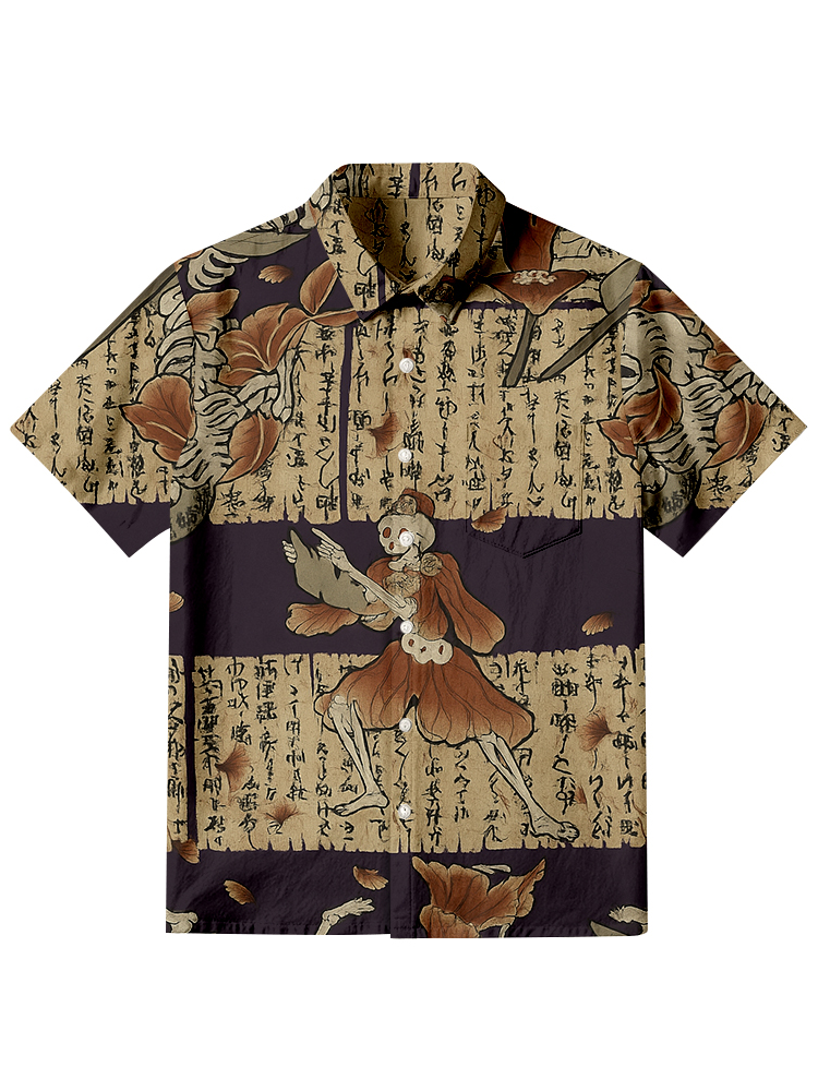 Men's Calligraphy Masks Japanese Art Print Short Sleeve Shirt