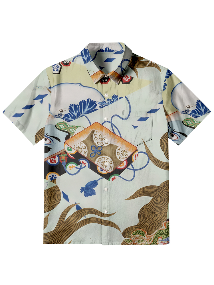 Japanese Art Retro Dragon Pattern Men's Short Sleeve Shirt