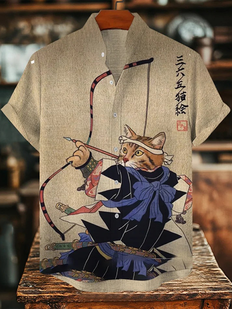 Men's Archery Cat Japanese Art Print Casual Shirt