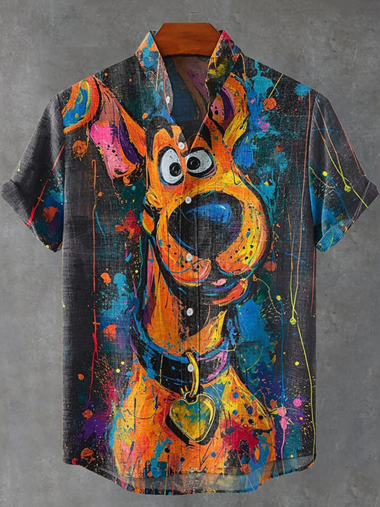 Men's Cartoon Abstract Sketch Dog Art Print Casual Shirt