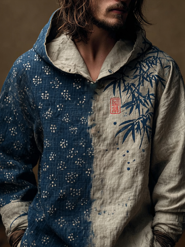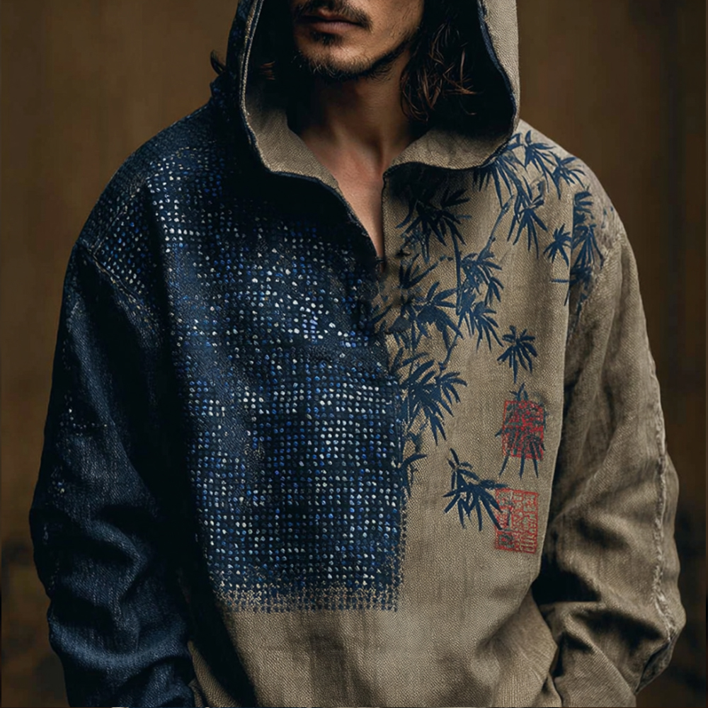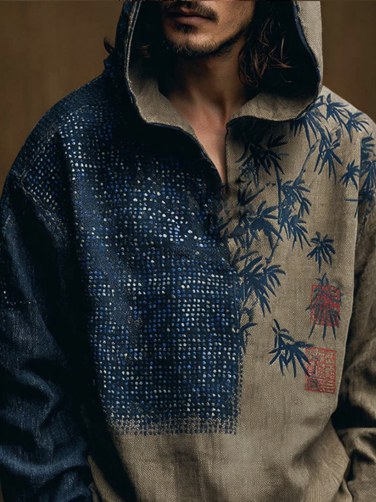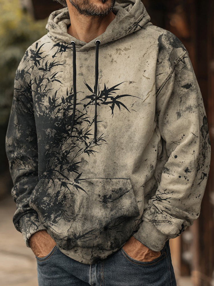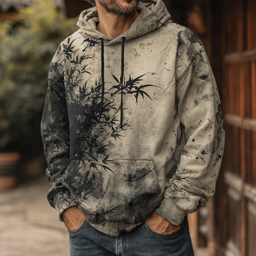 Men's Vintage Japanese Bamboo Forest Ink Painting Art Cotton Hoodie