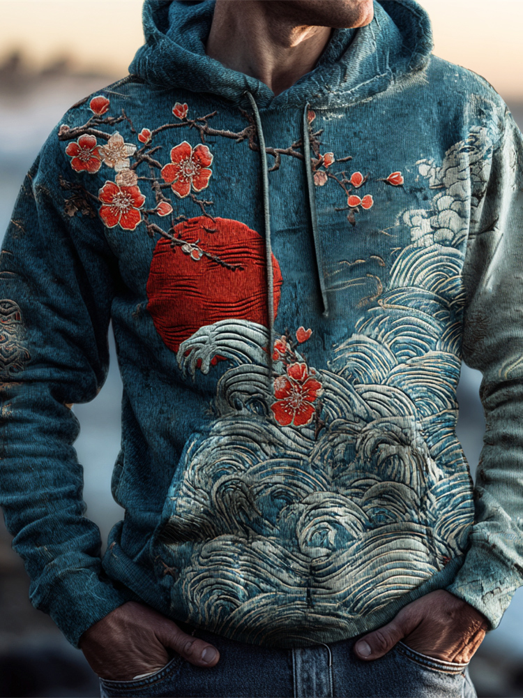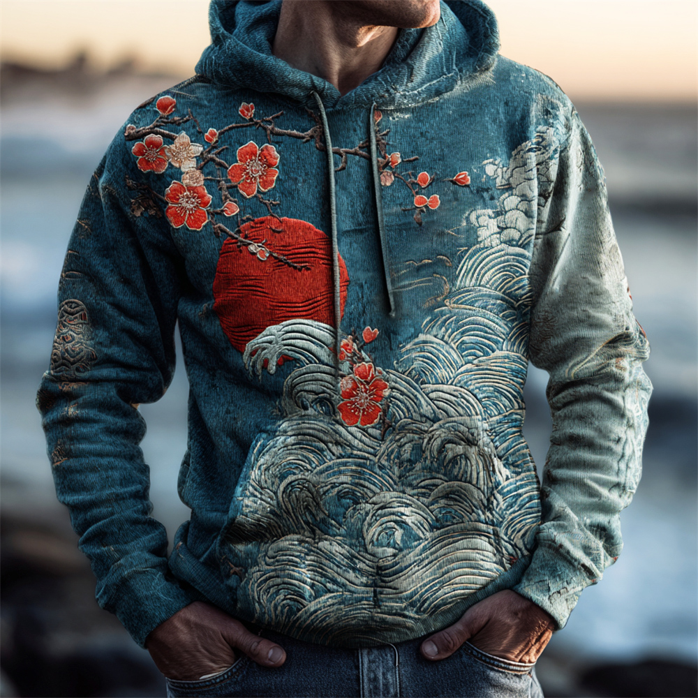 Japanese Ocean & Red Sun Art Men's Hooded Sweatshirt