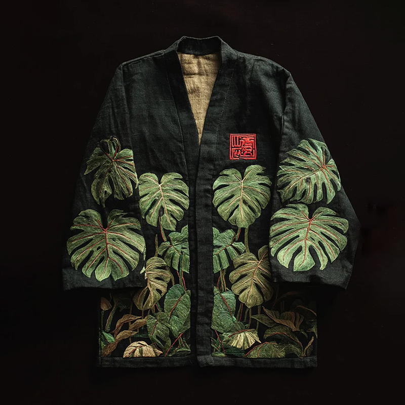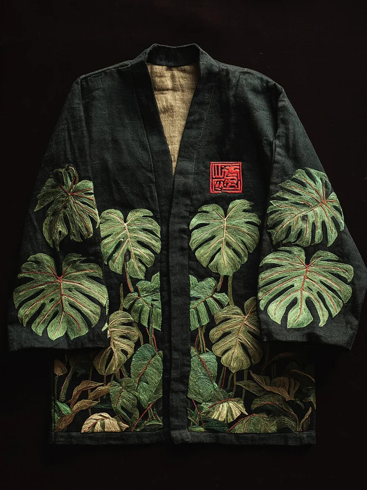 Men's Monstera Deliciosa Leaves Print Casual Kimono Cardigan