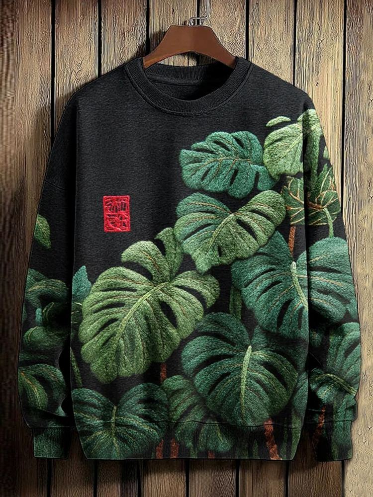 Men's Monstera Leaf Print Casual Sweatshirt