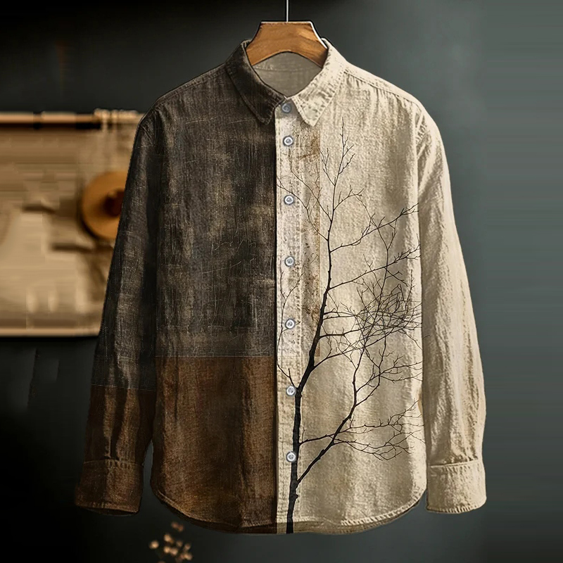 Men's Dead Branch Color Splice Art Print Long Sleeve Shirt