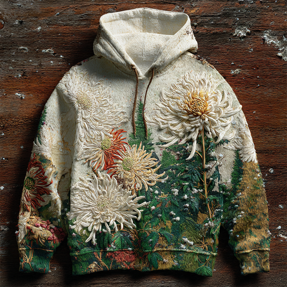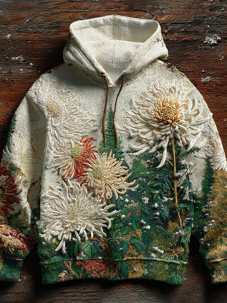 Japanese Chrysanthemum Embroidery Art Men's Hooded Sweatshirt