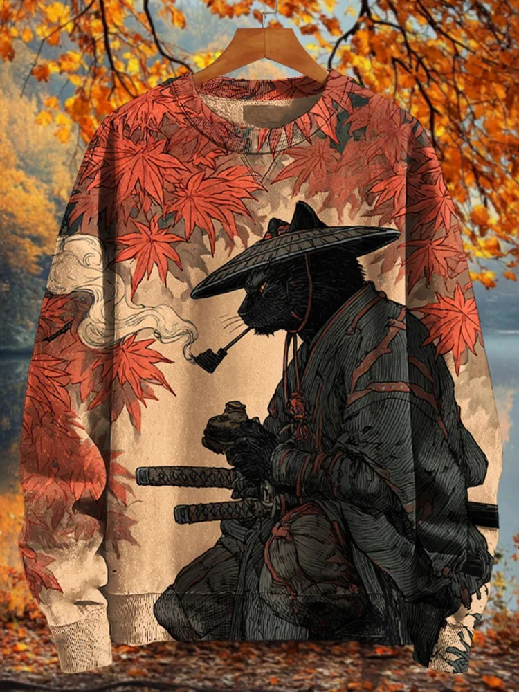 Men's Snowflakes Cat Samurai Art Print Casual Sweatshirt